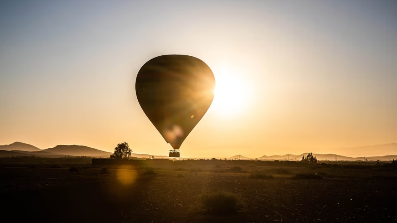乘坐热气球翱翔在马拉喀什的北棕榈园上空。从马拉喀什市中心出发,驱车 30 分钟即可抵达营地,听取安全简报。飞行前,您可以享用热情的茶、咖啡和羊角面包。