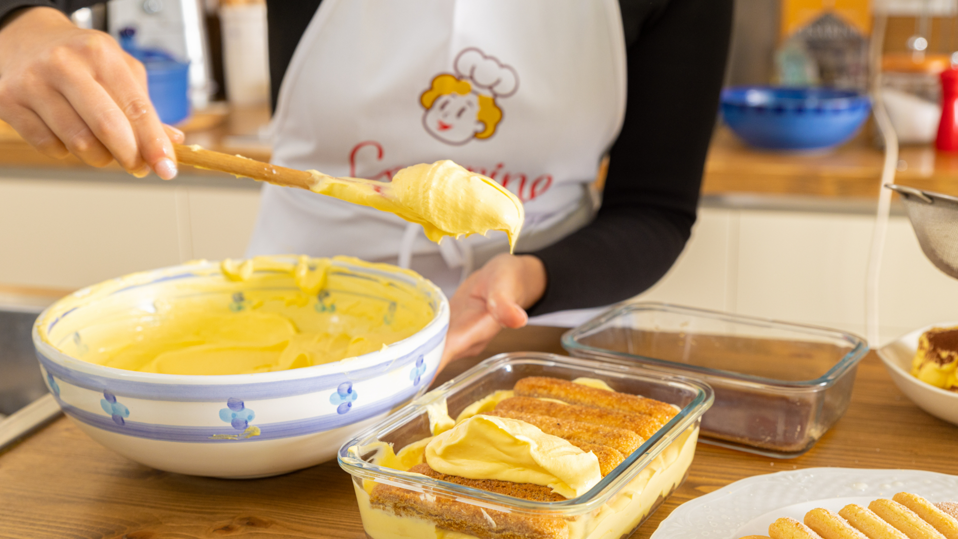 将浸泡在意式浓缩咖啡中的手指饼干与浓郁的马斯卡彭乳酪奶油分层,制作出完美的提拉米苏