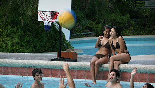 与朋友一起玩刺激的游戏或在泳池边放松一下