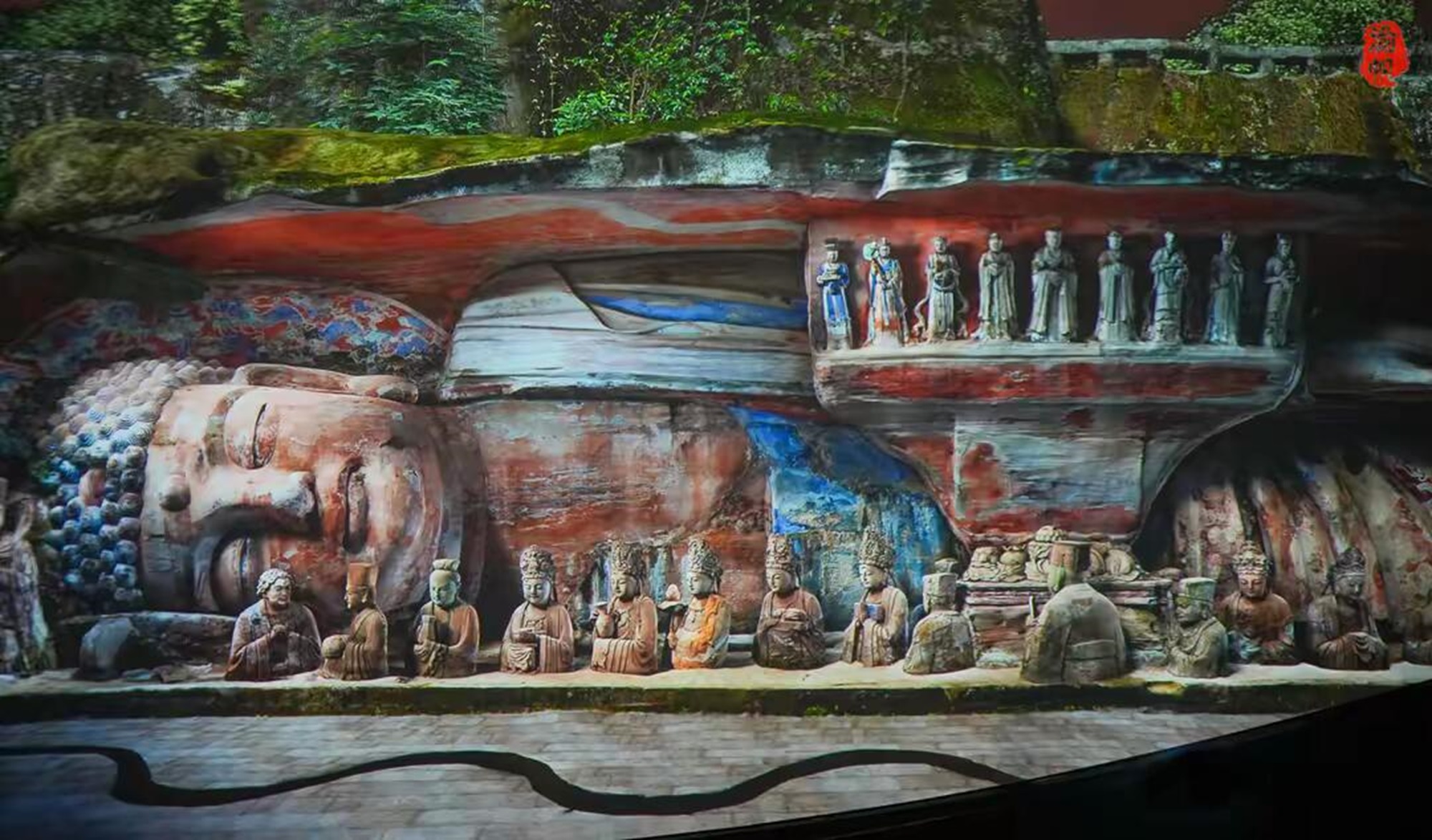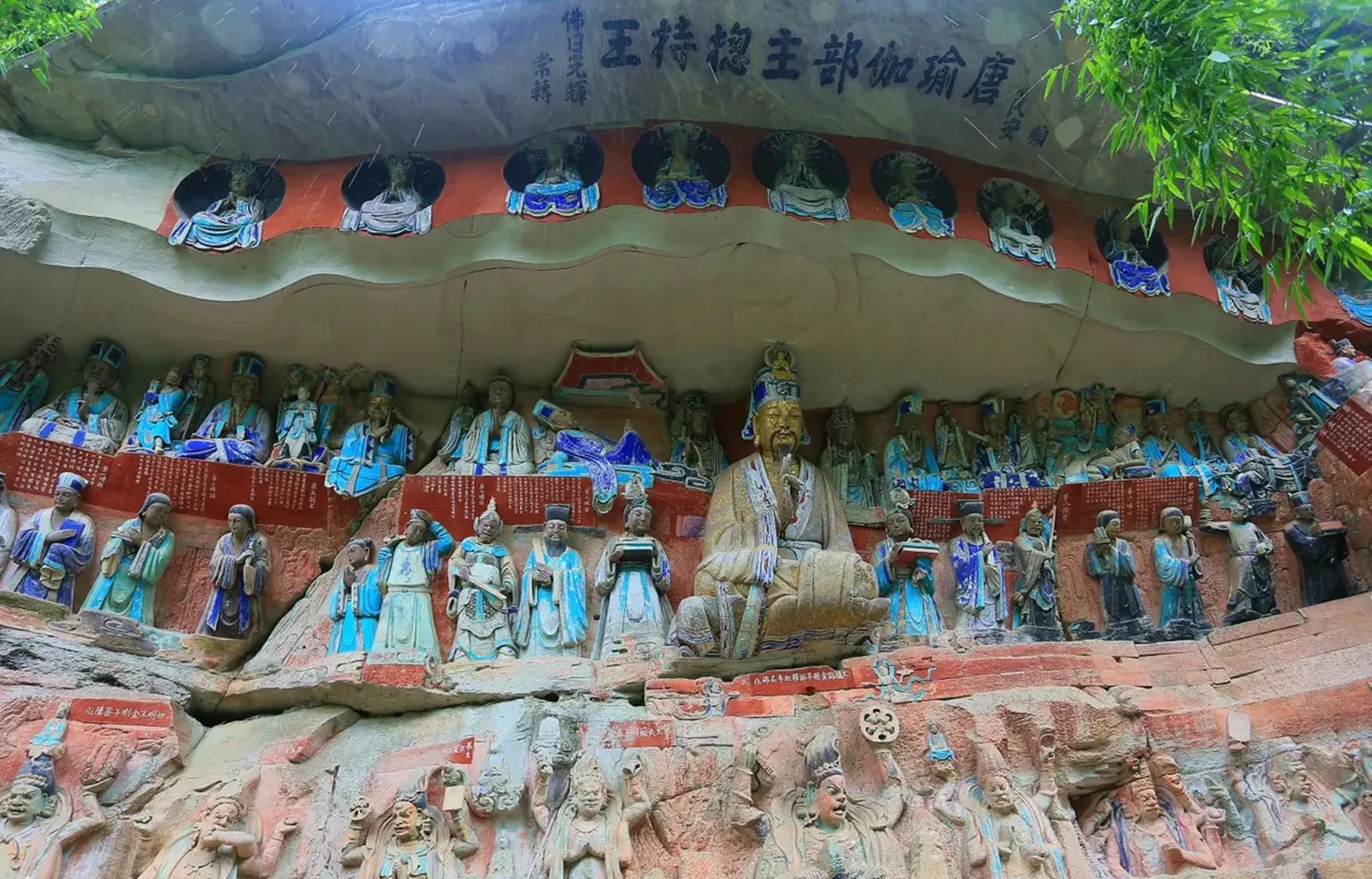 * 【宝顶山石刻】欣赏中国晚唐时期最大型的石窟造像艺术,宝顶山摩崖造像始凿于南宋年间,四周500米以内山岩上遍刻佛像,以六道轮回、广大宝阁楼、华严二圣像、千手观音像等最为著名,是我国石刻艺术中集佛教、儒教、道教于一体的艺术瑰宝