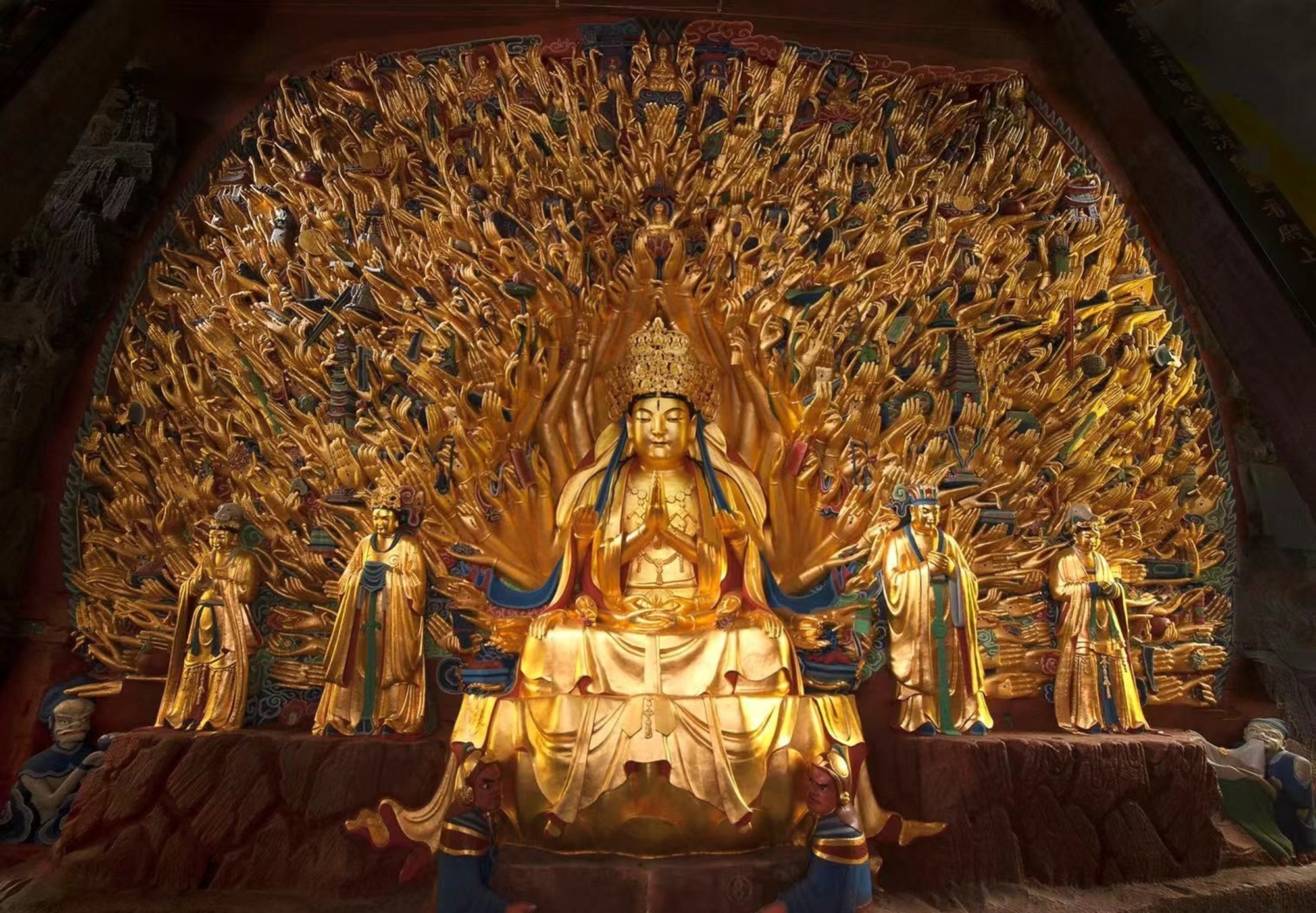 千手观音像,每只观音手上都有一只眼睛,真正的千手千眼观音,形状如孔雀开屏,视觉上超级震撼