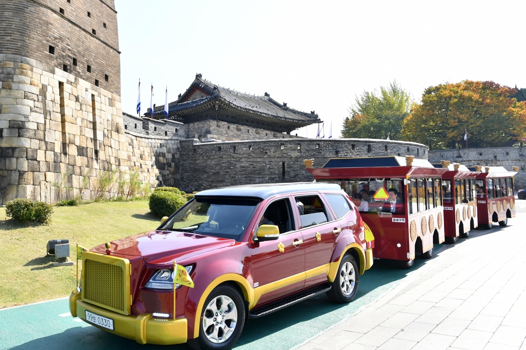 仿照正祖王的巡游路线设计的旅游列车,可让您舒适地游览水原华城。
