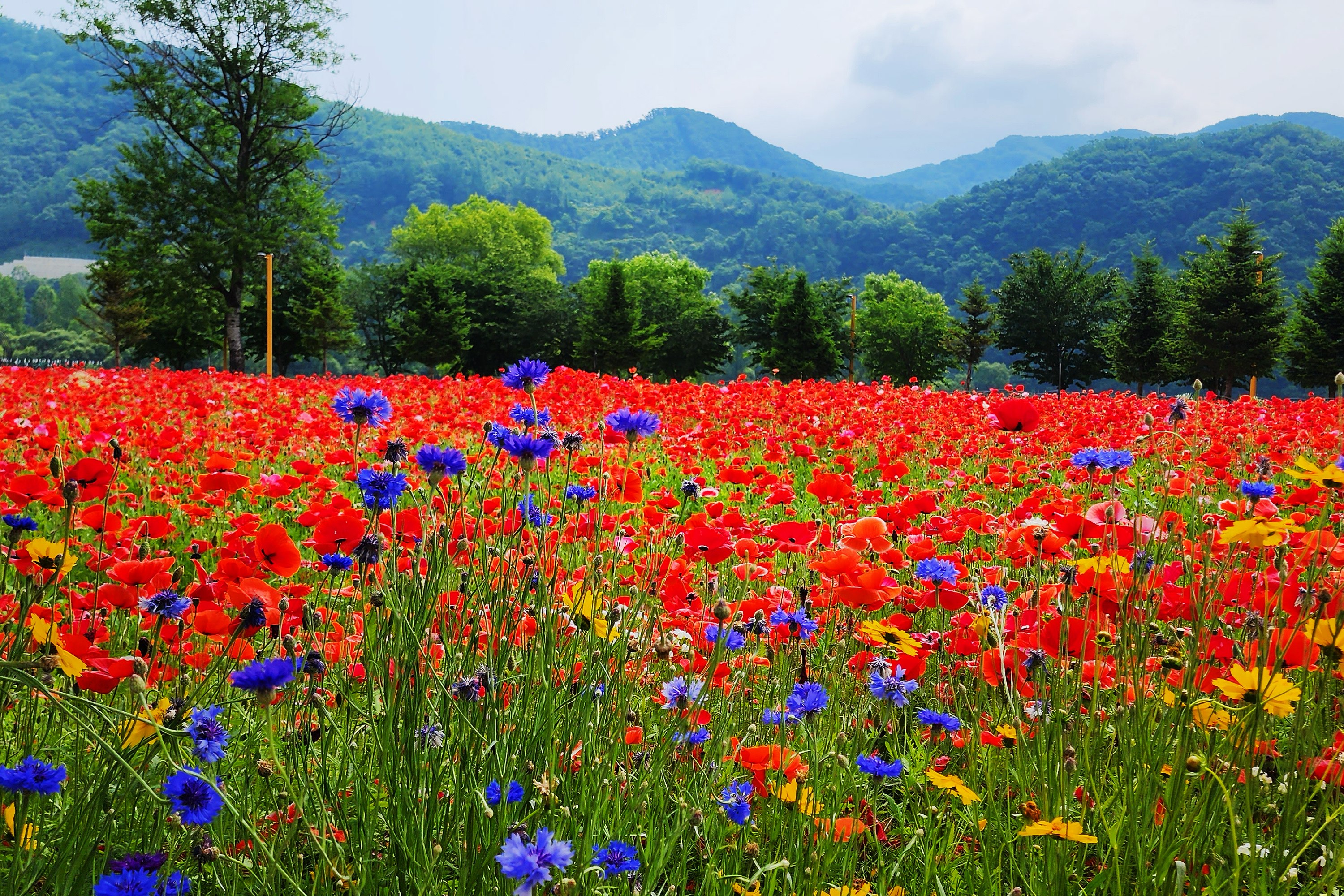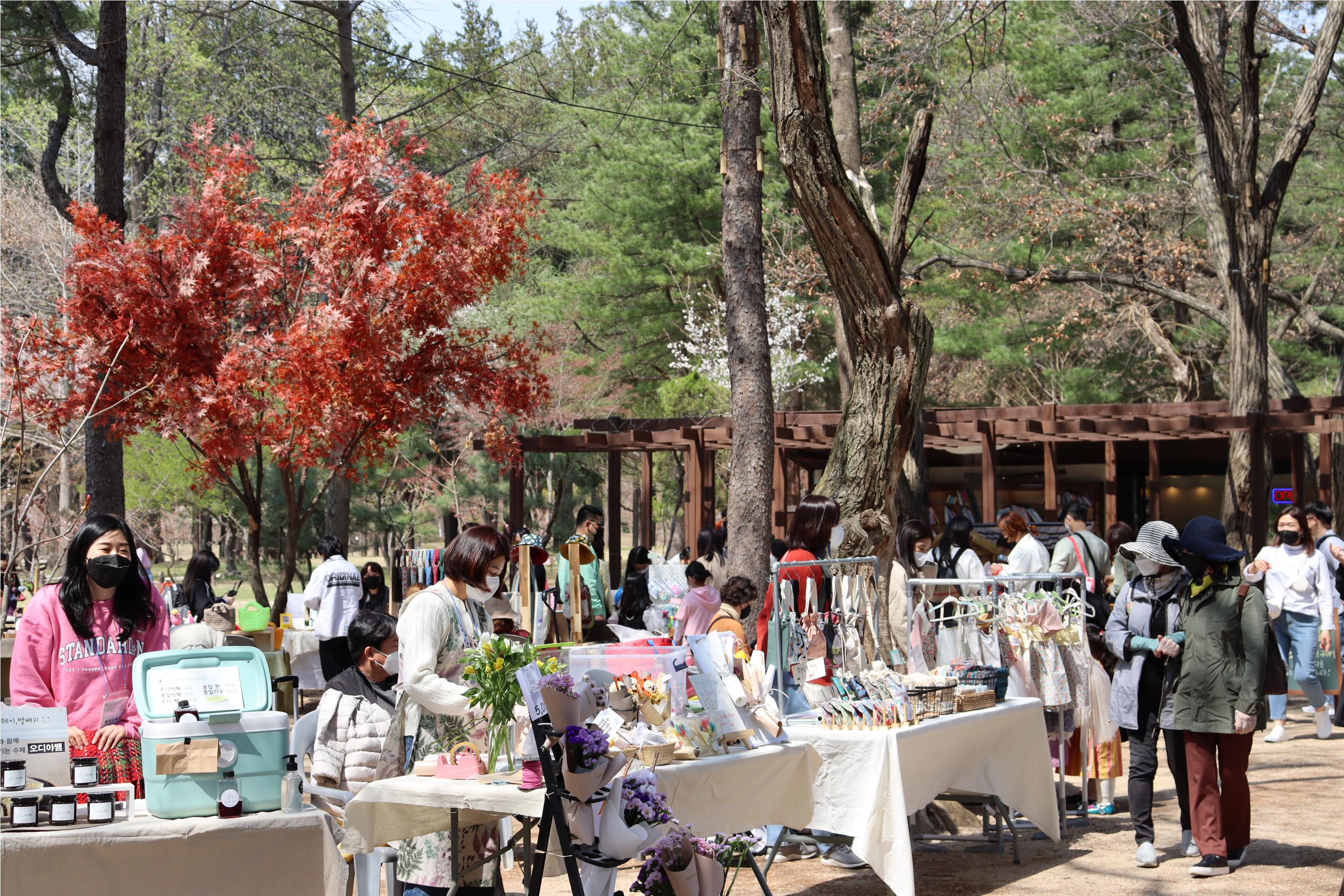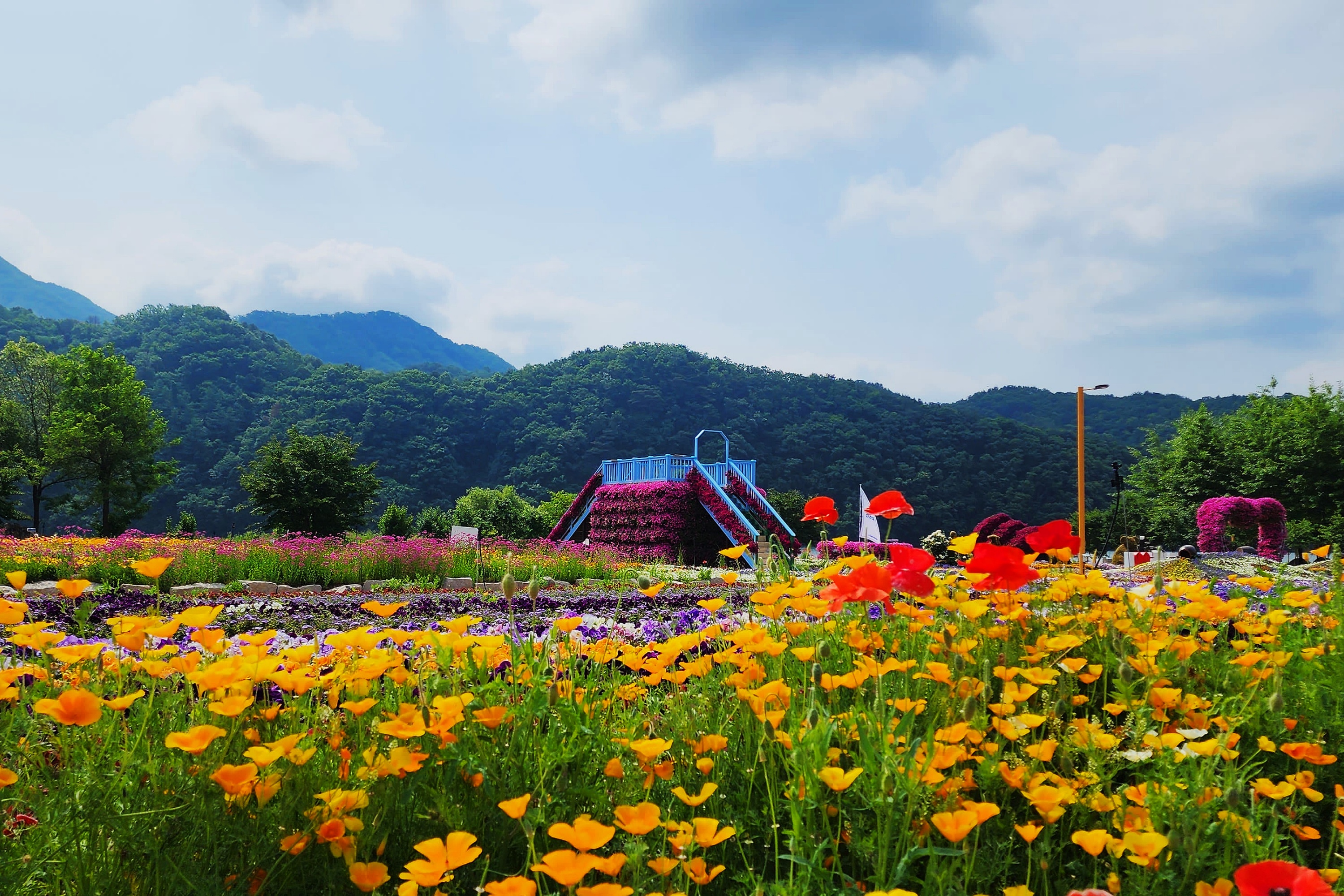 鲜花环绕的野餐区
