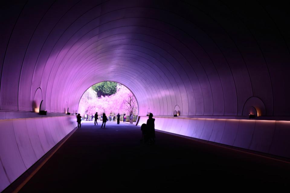 美秀美术馆:“缘溪行,忘路之远近,忽逢桃花林,夹岸数百步,中无杂树,芳草鲜美,落英缤纷,渔人甚异之”“初极狭,才通人,复行数十步,豁然开朗”,形成艺术、自然及建筑相互共鸣的场所,LV曾把“2018年早春度假系列发布会”搬到这里,樱花季更有绝美的樱花隧道。
