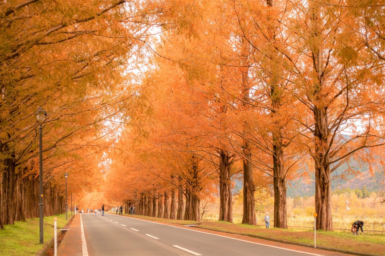 水杉树高大挺拔,四季景致各异,春天嫩绿清新,秋天金黄夺目,成为众多游客前来打卡拍照的热门地。