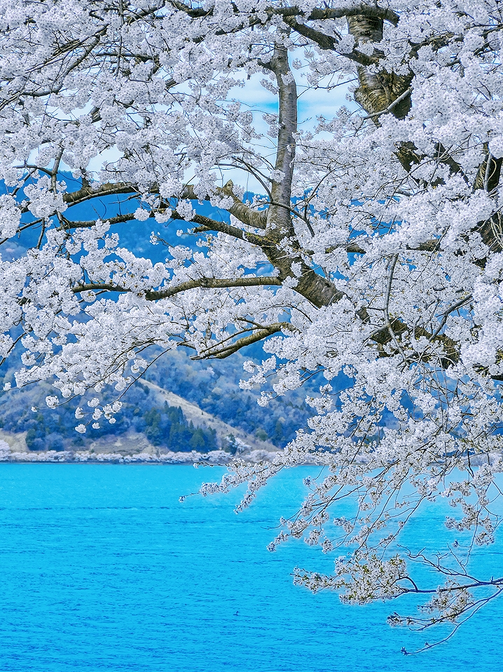 这里拥有约 800 棵染井吉野樱,沿着湖岸绵延 4 公里,形成了壮观的樱花隧道,每年 4 月上旬到中旬,樱花盛开,粉色花海与蓝色湖水相互映衬,美如仙境