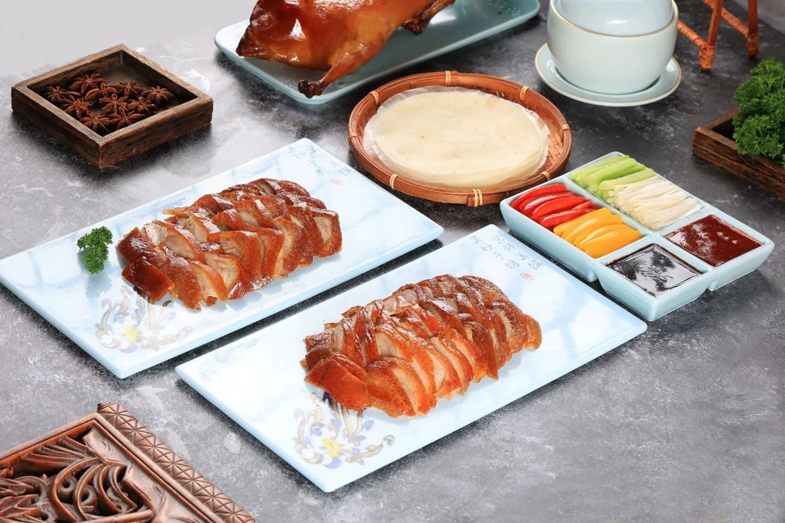 北京全鸭宴是以北京填鸭为主料,将鸭的各个部位如舌、脑、心、肝、胗、胰、肠、脯、翅、掌等,通过多种烹饪手法,精心烹制出包括烤鸭及百余道冷热鸭菜的特色筵席,是北京传统菜系中的璀璨明珠