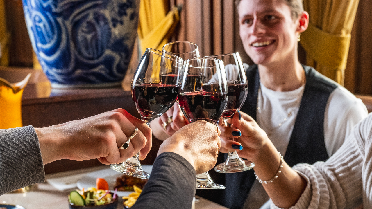 在位于阿姆斯特丹中央火车站 2B 站台的 Grand Cafe Restaurant 1e Klas 享受时尚用餐体验,这里是隐藏的瑰宝。品尝六种炸丸子和苦丸子,包括小牛肉、北京烤鸭、泰国绿咖喱、芝麻菜奶酪、鸡肉沙爹和虾,搭配喜力生啤酒、自酿葡萄酒或软饮料。