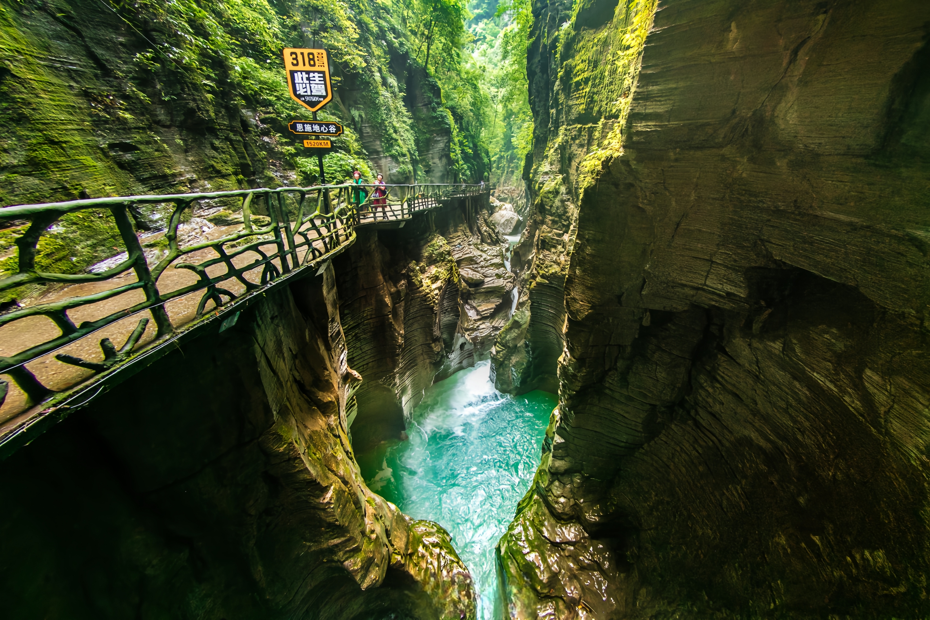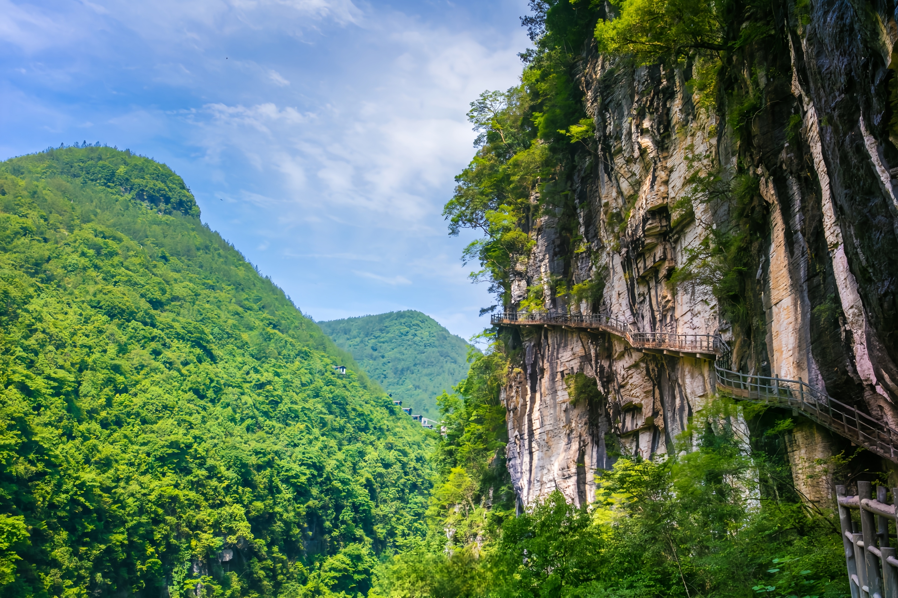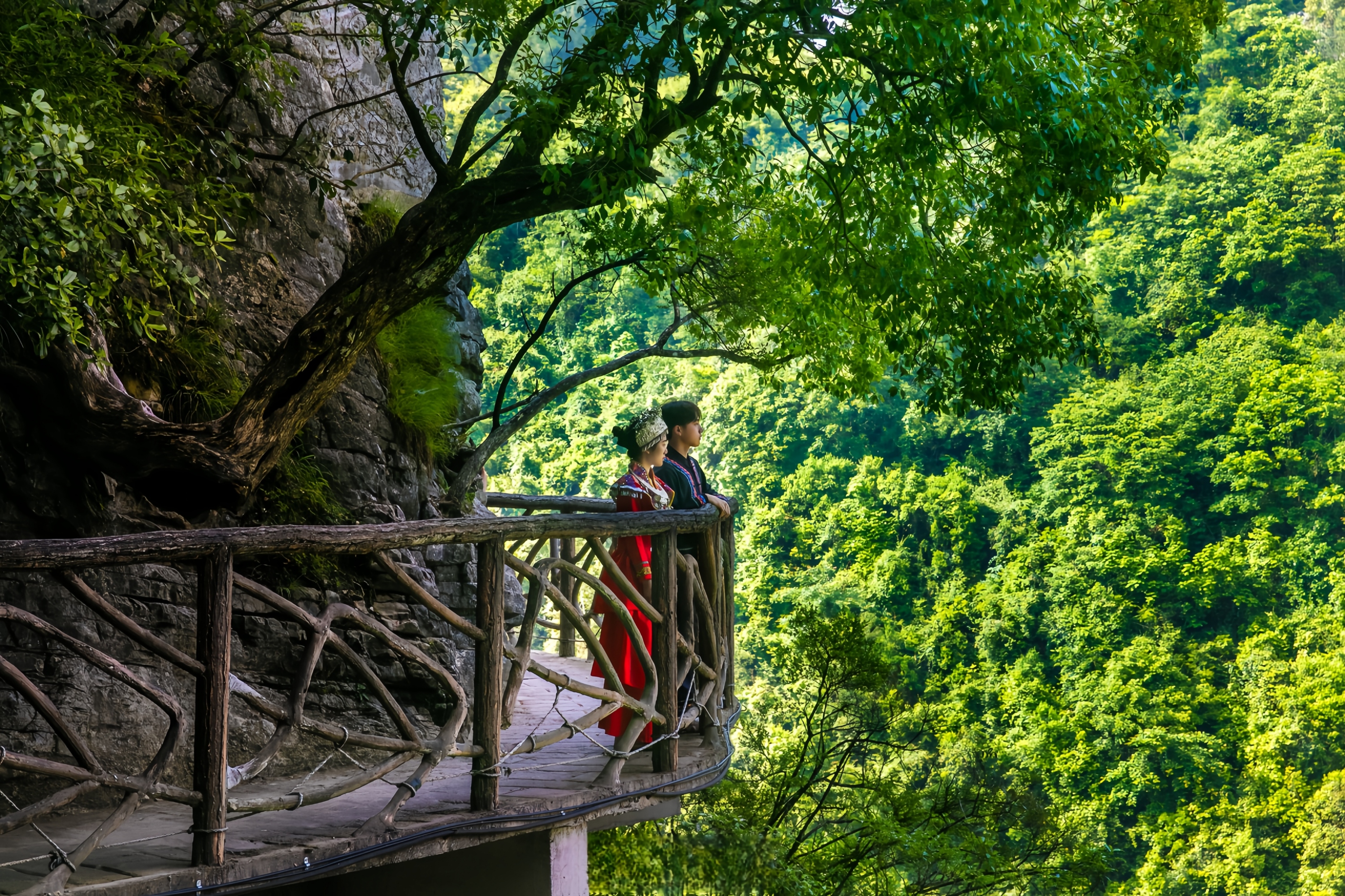 景区内的“地心天堑”游览区以“险”著称,游客可以穿越时空隧道、踏步云索桥,步入长约2200米的绝壁悬空栈道,体验惊险刺激的探险之旅。