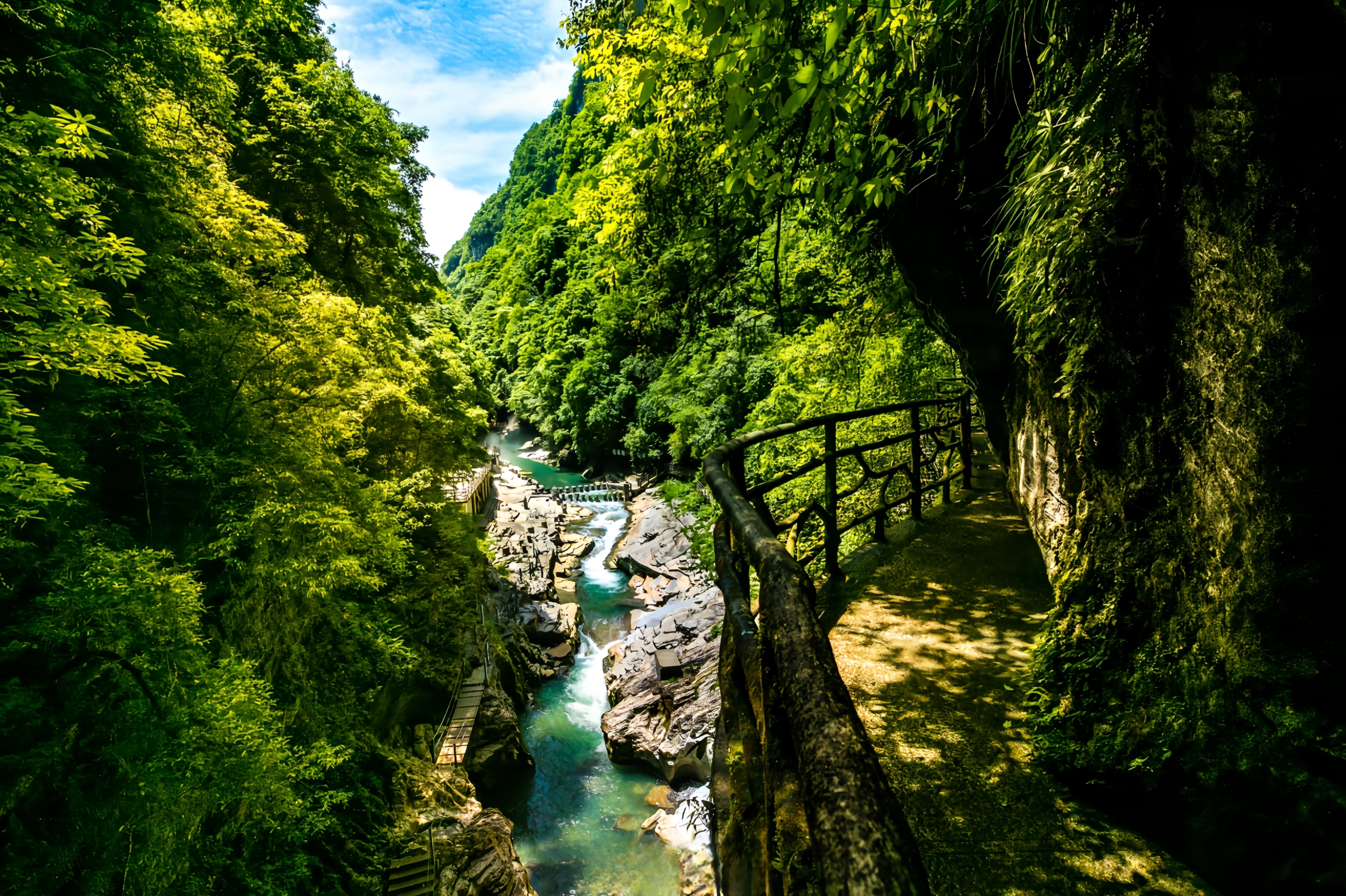 景区内的地质奇观鬼斧神工,2.5亿年前三叠纪逐渐而成的嶂谷地质景观令人叹为观止。