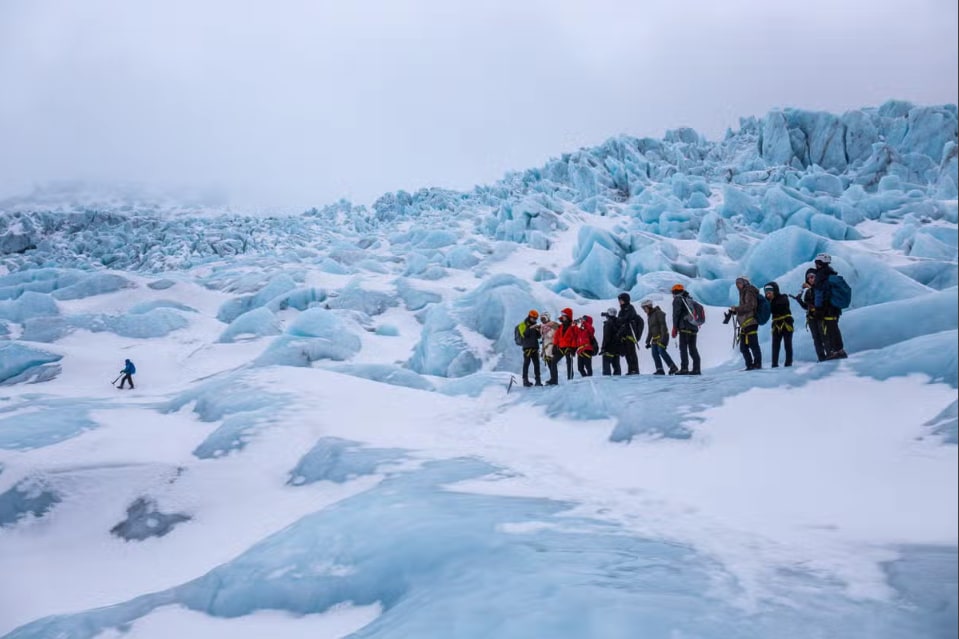 您的旅程从斯卡夫塔山机场(Skaftafell Airport)开始,在这里,您将与专业认证的冰川向导及同行健行者会合。在领取冰川健行所需的专业装备并接受安全讲解后,我们将前往冰川顶部,开启这段令人难忘的旅程。在冰爪的助力下,在向导的带领下,您将迈入这片不断变幻的冰雪世界,亲身探索冰川的奇特地形。