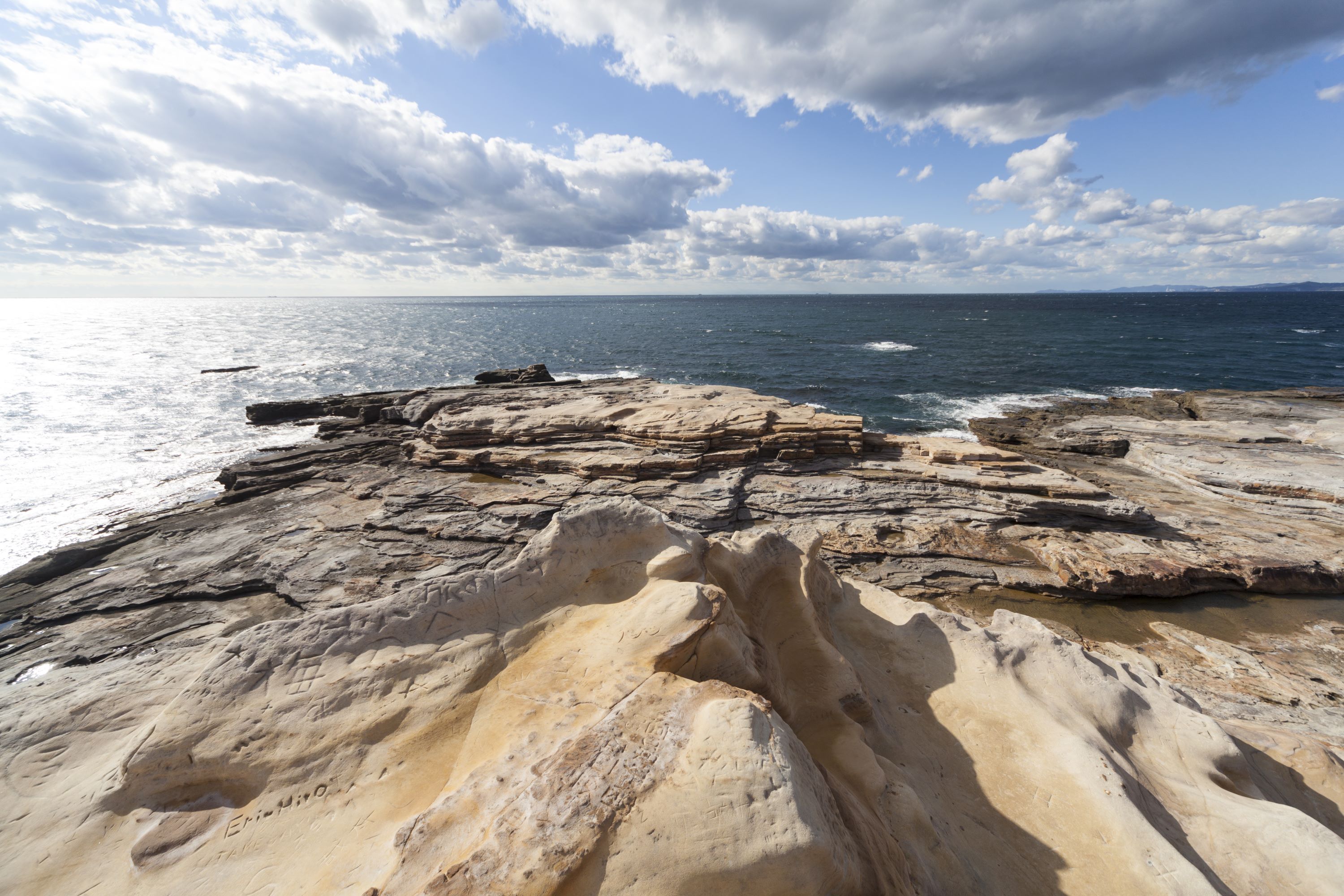 * **千叠敷** 也是因太平洋所侵蚀而形成的大片岩石地形。您可以在这里感受海风,漫步于岩盘,欣赏壮丽的海景