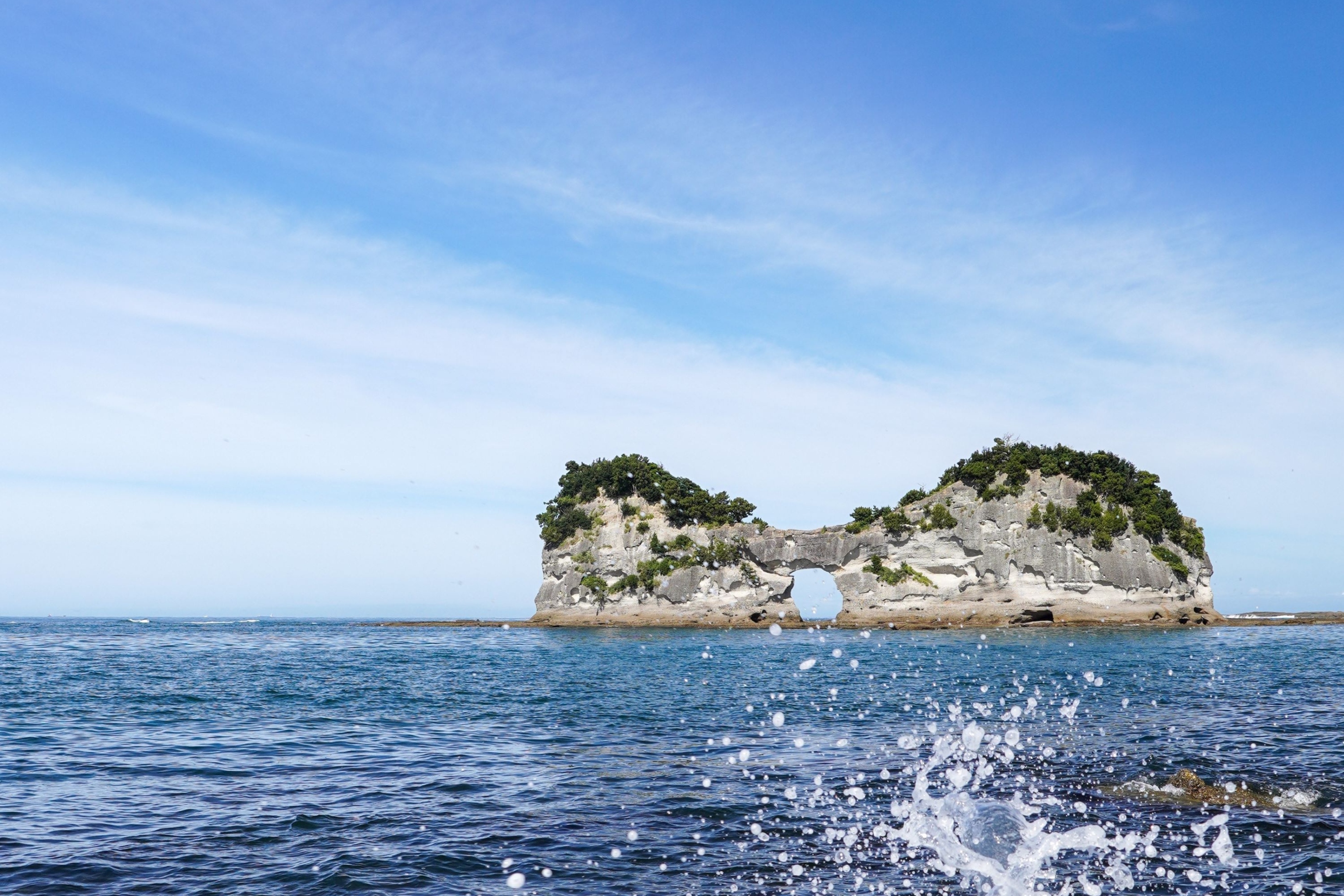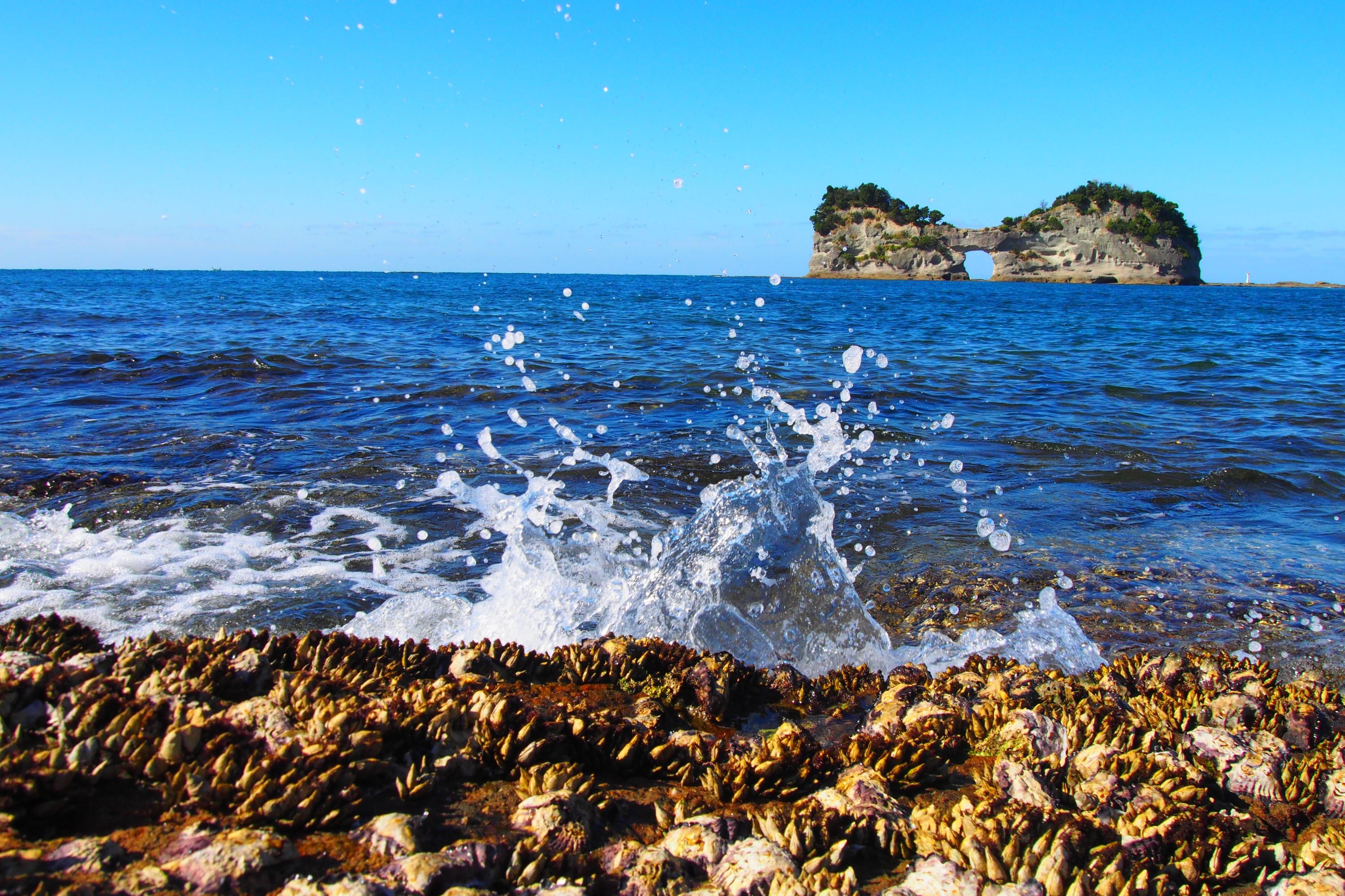 「圆月岛」是白滨町的象征,岛中央有因海浪侵蚀而形成的圆形海蚀洞,是一处绝美的赏景胜地
