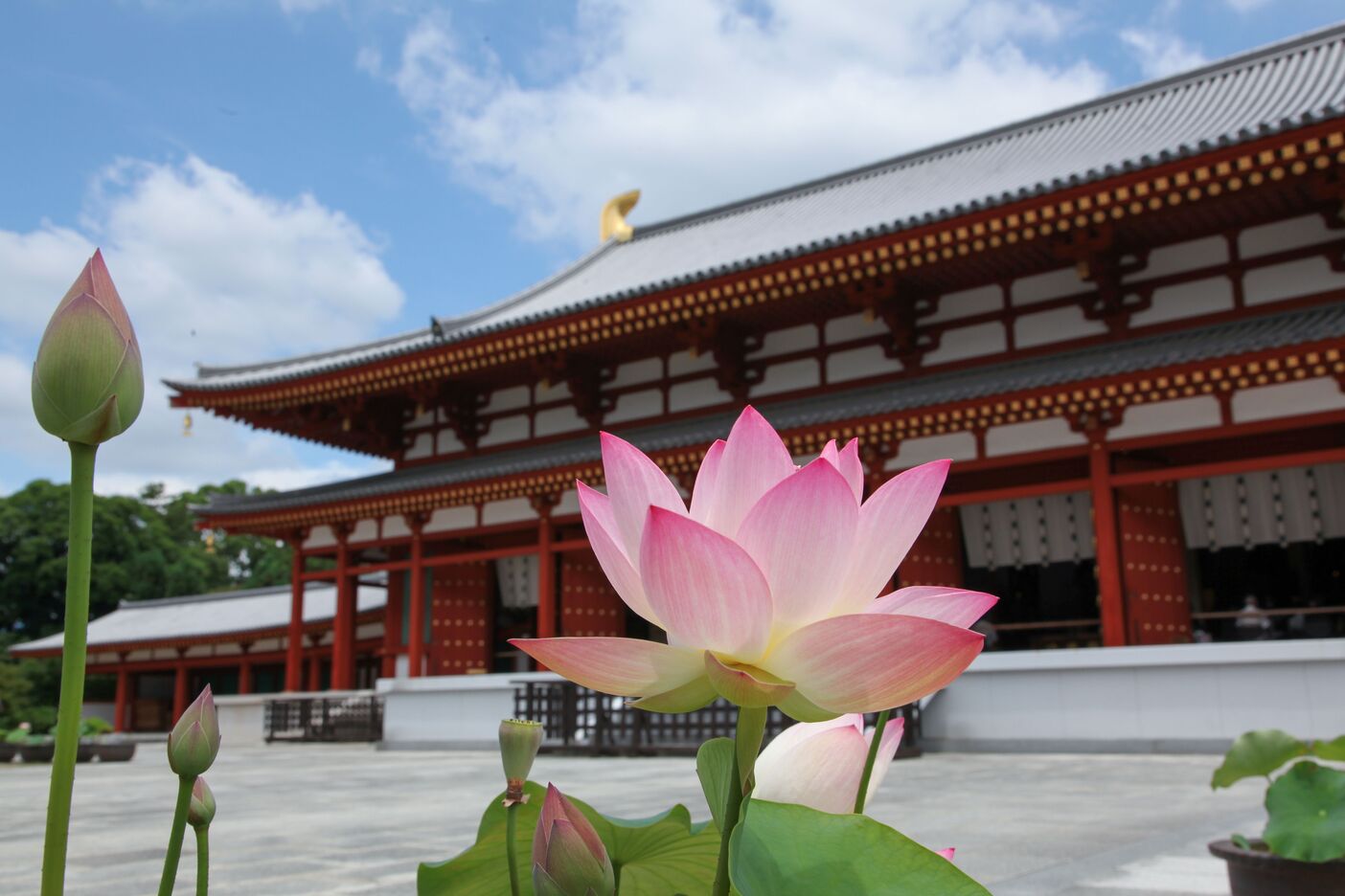 从初夏开始的夏季里,正值莲花盛开季节。被视为佛教象征的莲花,许多佛像的台座上都雕刻着莲花。莲花从淤泥中生长出来,绽放出清新圣洁美丽的花朵。位于奈良市·西之京的以莲花著名的西大寺、喜光寺、唐招提寺、药师寺之间的道路被称为“莲花路”,在花季(6~8月)期间,每年都有许多香客来拜观这四个寺院。奈良市观光协会正在限时销售这四个寺院的通用拜观券(包括四个寺庙的拜观费和特别纪念品)。此外,购买四个寺庙的通用拜观券还可以获得荷花之路特别御朱印的购买资格(需另收费,御朱印是指授予寺院参拜者的凭证,未购买四寺通票者无法自行购买御朱印)。此外,您还可以获得在周边地区用餐或购物优惠的优惠券