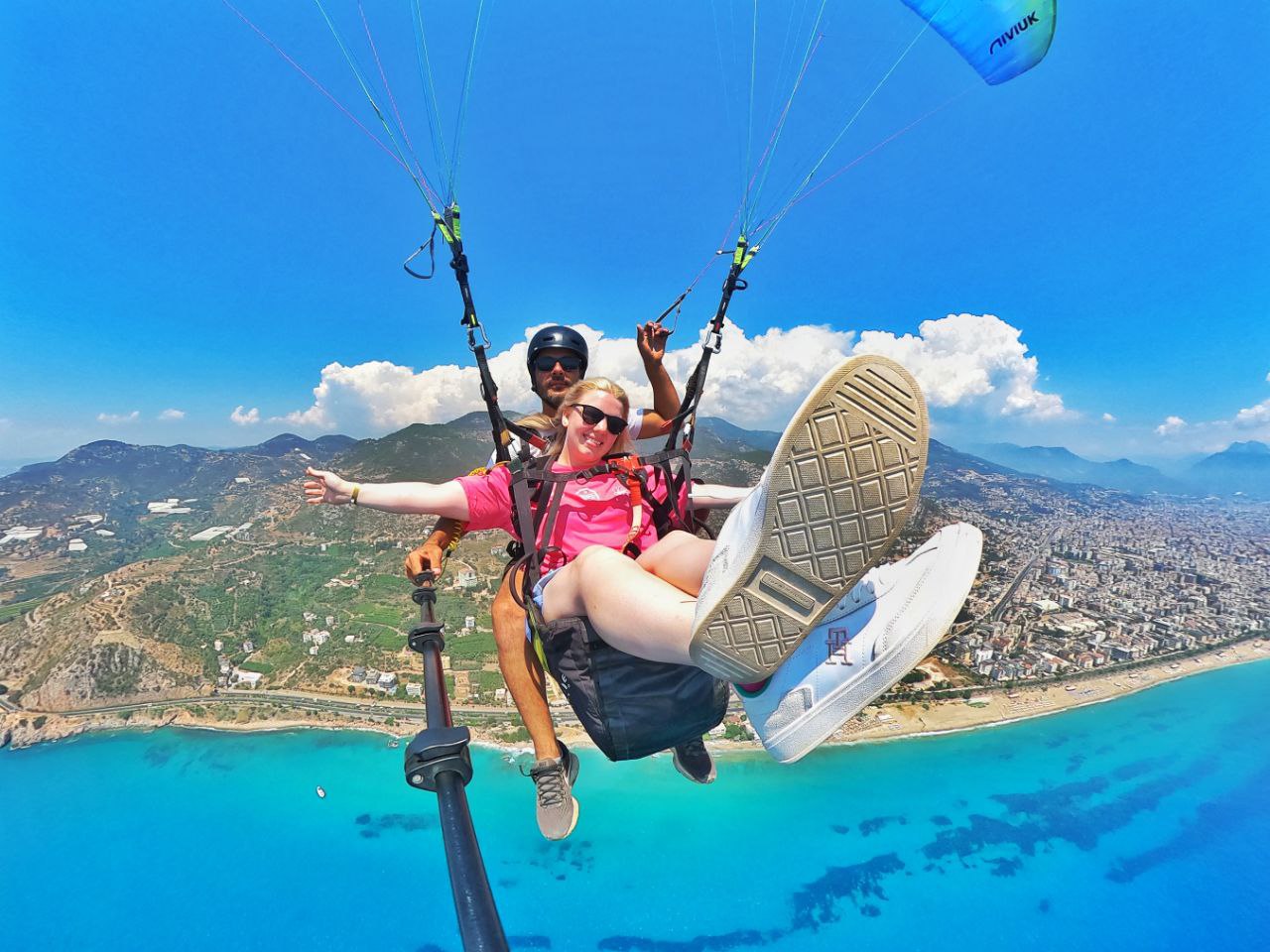 准备好从空中欣赏阿拉尼亚的壮丽景色了吗?参加我们专业飞行员的指导,体验700米高空的刺激滑翔伞飞行。这场肾上腺素飙升的冒险之旅将为您带来难忘的体验,带您翱翔于阿拉尼亚的壮丽景色之上,包括克利奥帕特拉海滩、阿拉尼亚城堡和波光粼粼的地中海。