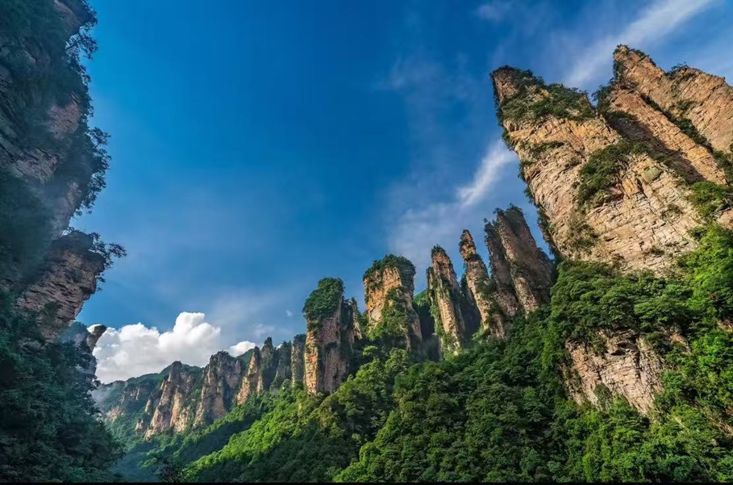 * 张家界的喀斯特地貌独具特色,山峰如刀削般陡峭,石柱林立,形态各异,如同大自然的鬼斧神工,凭其独特而惊人的美丽而闻名;搭乘世界上最快、最高的观光电梯去领略原始生态般的奇峰秀林,乘世界最长索道体验腾云飞翔的刺激震撼;登上袁家界,放眼望去全是奇峰异石、翠绿青松,每迈动一步,幽壑间的山峰都会呈现出万种姿态,倍感神秘和奇瑰,还可在此观赏著名电影《阿凡达》中哈利路亚山的原形——乾坤柱;再登天子山,欣赏云海奇观,飘渺云雾环绕山峰,绿树点缀,好似遇见人间仙境,另有贴心导游服务,专业讲解,定让你旅程更加印象深刻,难以忘怀