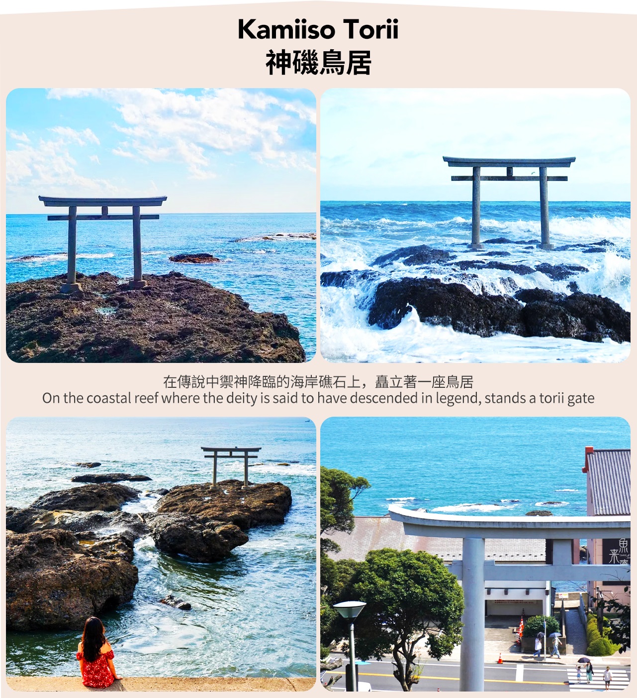 神矶公园以其神秘的海边鸟居而闻名,拍照打卡的绝佳地点