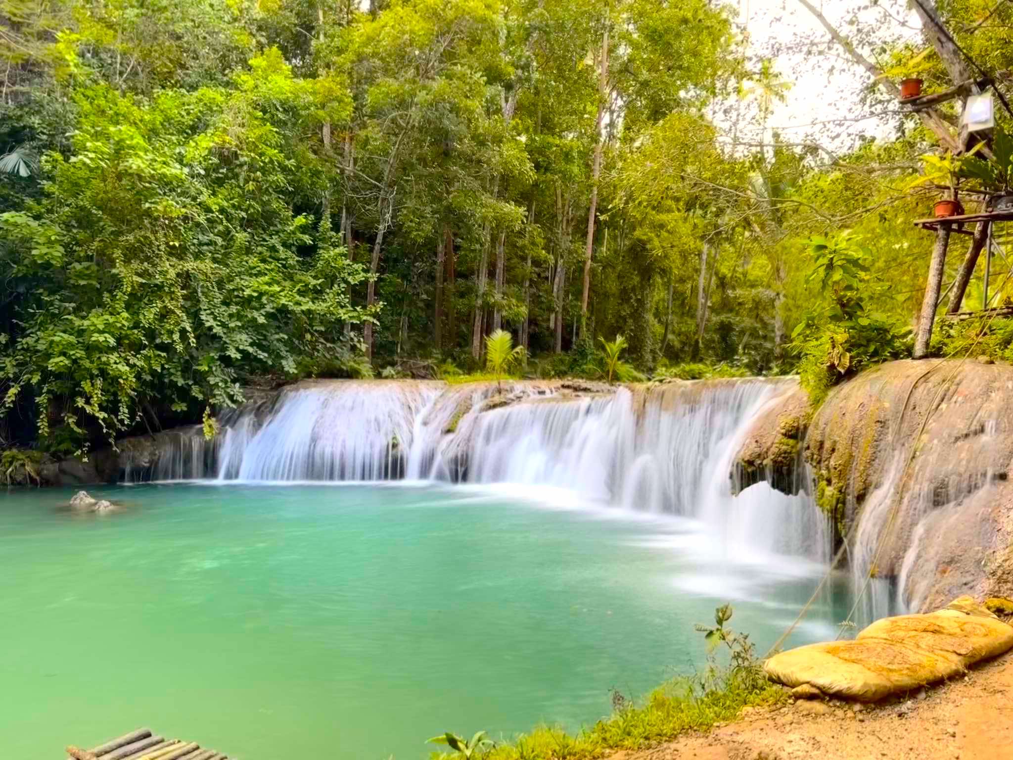 在坎布加海瀑布游泳,这是一座拥有碧绿海水的多层瀑布
