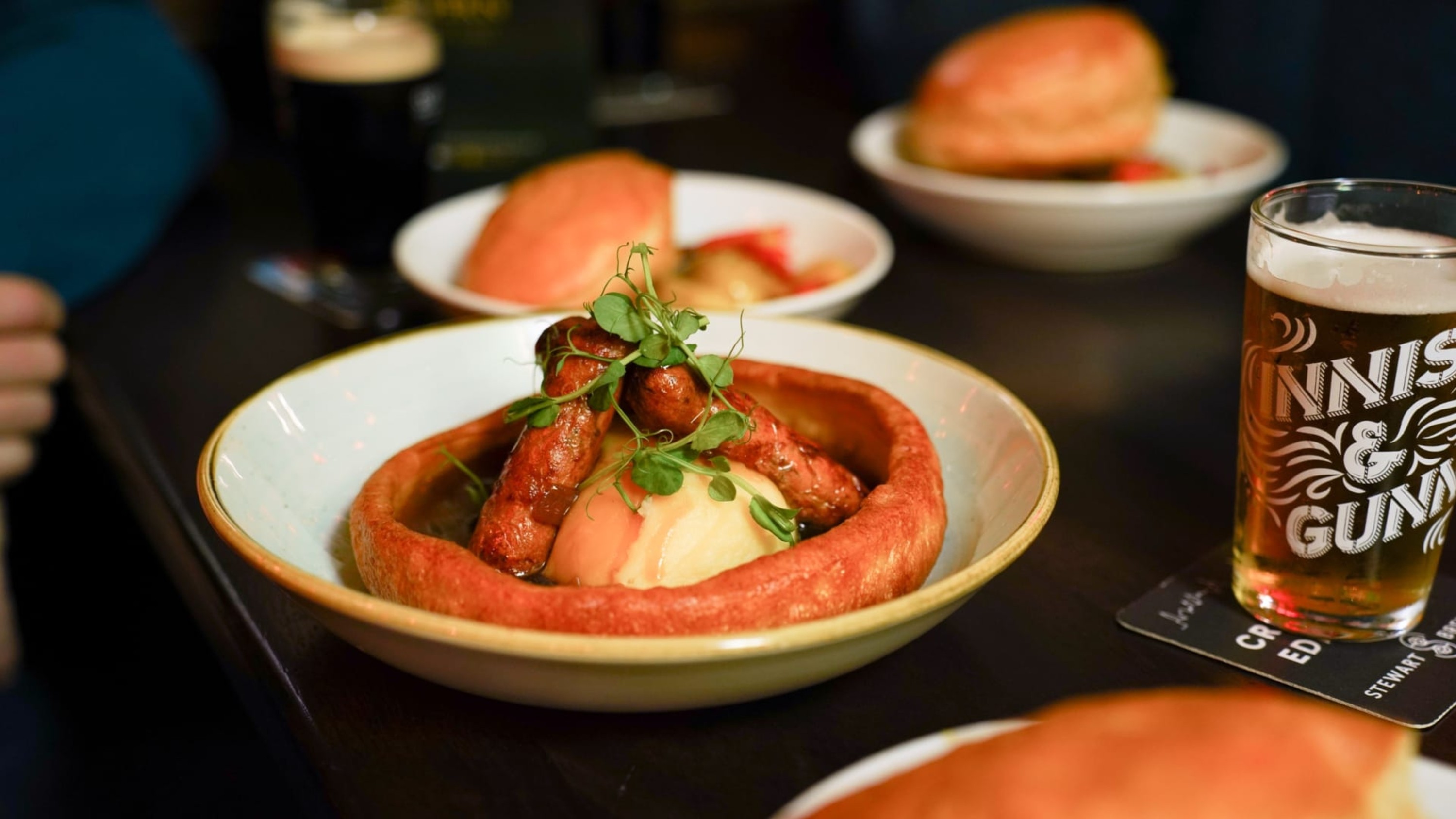 在爱丁堡的经典餐厅享用精美盘装的烤肉晚餐,搭配时令蔬菜