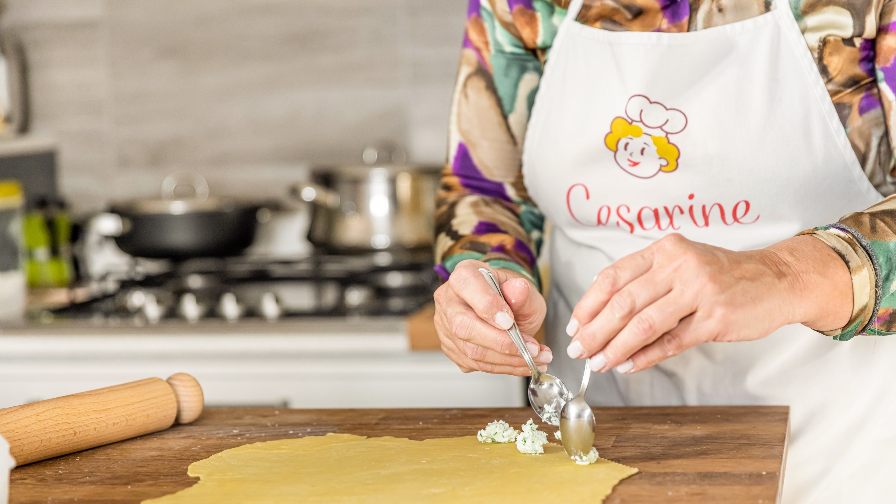 新鲜制作的意大利面和馄饨——在正宗的意大利烹饪课上精心制作