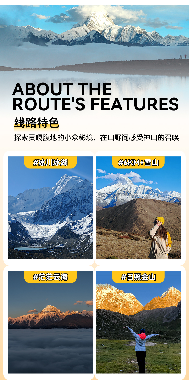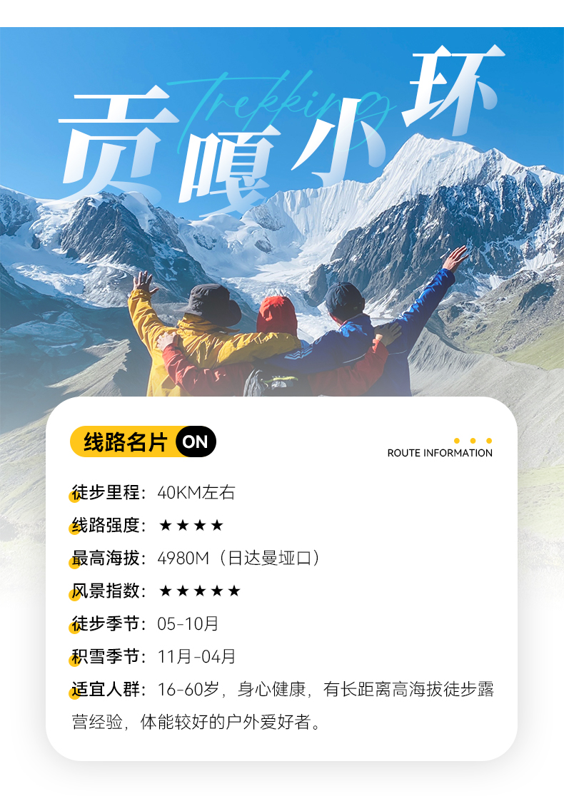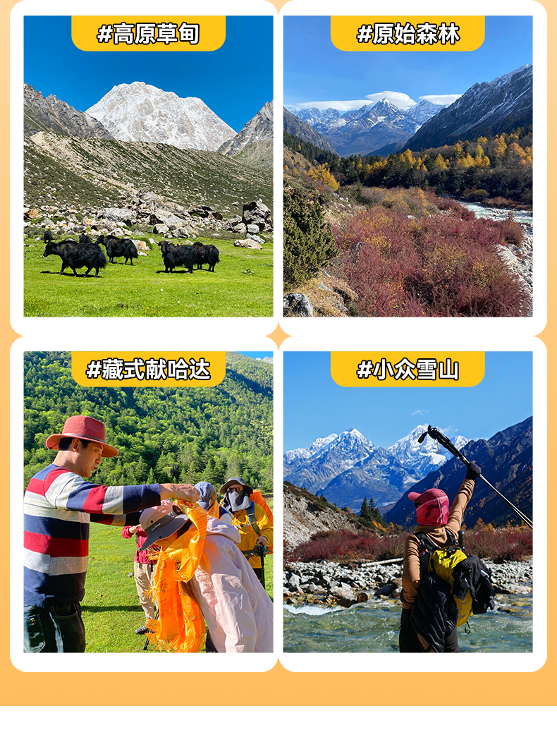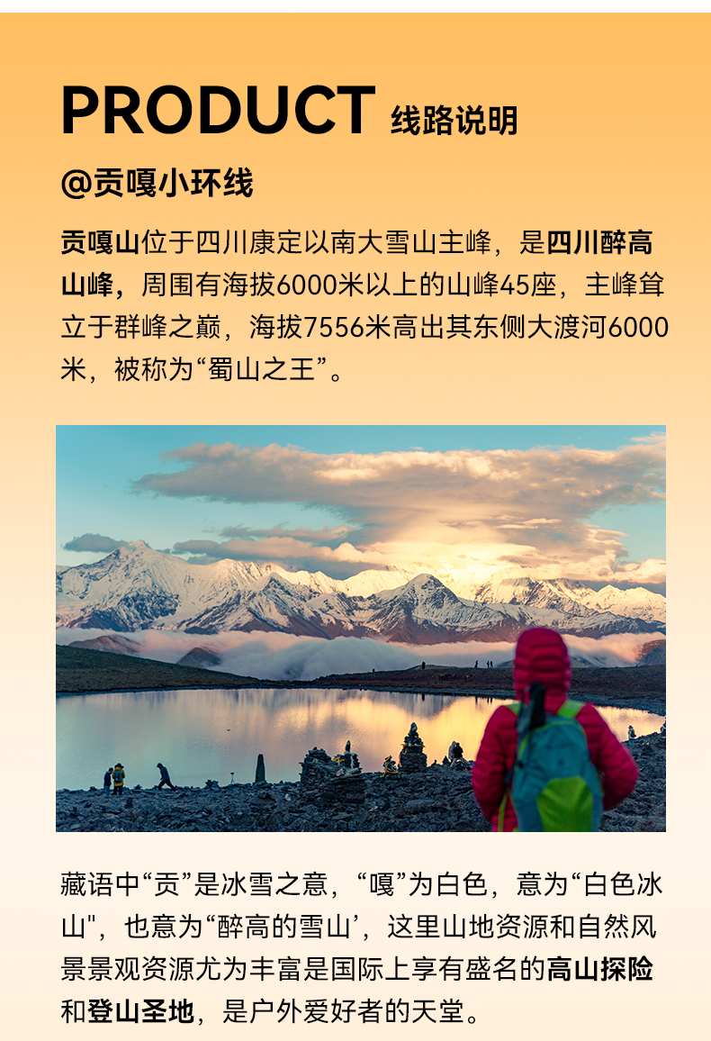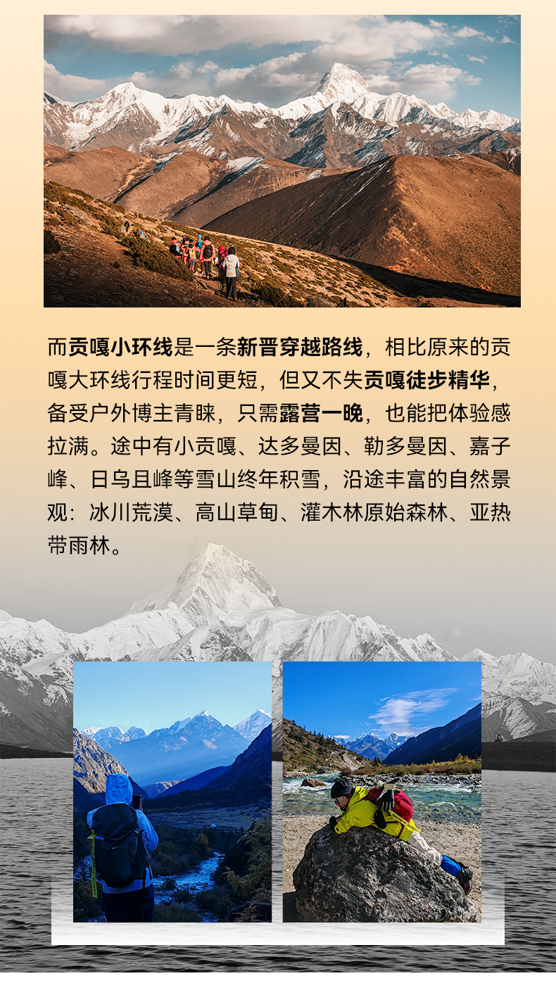 川西贡嘎小环线徒步5日游(贡嘎雪山+冷嘎措+泉华滩+子梅垭口+领队配比1:8+专业马帮+轻装徒步)