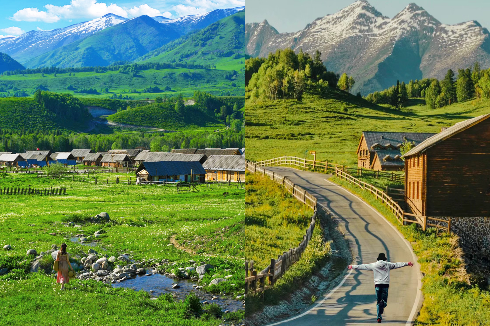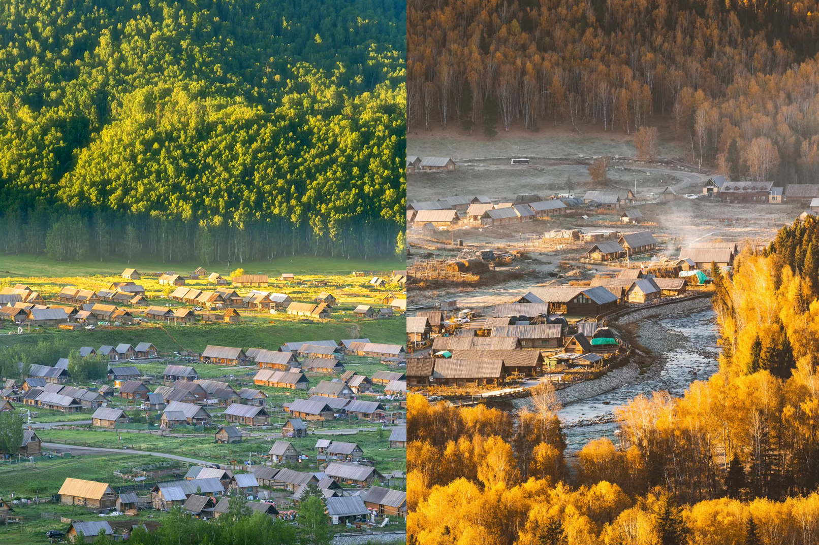 【禾木村】被称为“神的自留地”,位于喀纳斯景区内,一个由哈萨克人和图瓦人共同聚居的小村庄,我们将入住禾木景区内。禾木村中所有的房屋都是朴素的小木屋,散乱地分布在山间的谷地里,当地少数民族同胞在院子里劳作着,显得古朴安静。禾木河在村旁流过,河水是浅蓝色,非常的清澈。村子周围还有草原、白桦林等,冬天的时候,山顶处则开始积雪成为了一座座小雪山,好像一个童话世界。禾木村不大,村中的主干道长两三公里左右,在村中步行游览即可。观景台位于禾木河对岸的山坡上,在观景台上可以拍摄村庄的全景,是摄影爱好者拍摄大片的好去处。