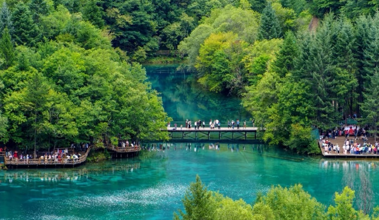 来到**九寨沟**,那简直就是步入了一个童话世界般的梦幻天地。踏入景区,眼前的景象如同画卷一般徐徐展开,五彩斑斓的海子错落有致地分布在山间,像是大自然这位神奇画家打翻了调色盘,将世间最绚丽的色彩都倾洒在了这里。从那澄澈如镜、蓝得深邃的长海,到在阳光照耀下闪烁着 “火花” 般光芒的火花海,再到色彩交织、如梦如幻的五花海,每一处海子都有着独特的韵味,它们或静谧、或灵动,让人目不暇接,忍不住驻足欣赏,想要把这每一抹色彩、每一片波光都深深印在脑海之中。沿着栈道漫步,身旁是郁郁葱葱的山林,耳畔是潺潺的流水声,清新的空气扑面而来,仿佛能洗净尘世的一切疲惫,让身心都沉浸在这一片宁静与美好之中
