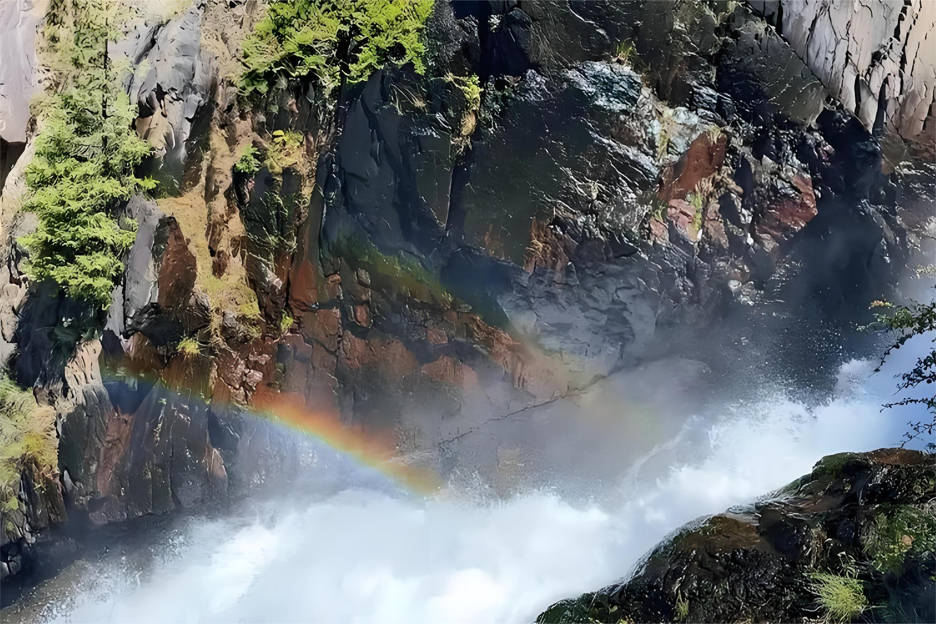 * 天山天池的飞龙潭,潭水幽深似蕴龙灵,四周翠影环绕,仿若仙境中的隐秘瑰宝。