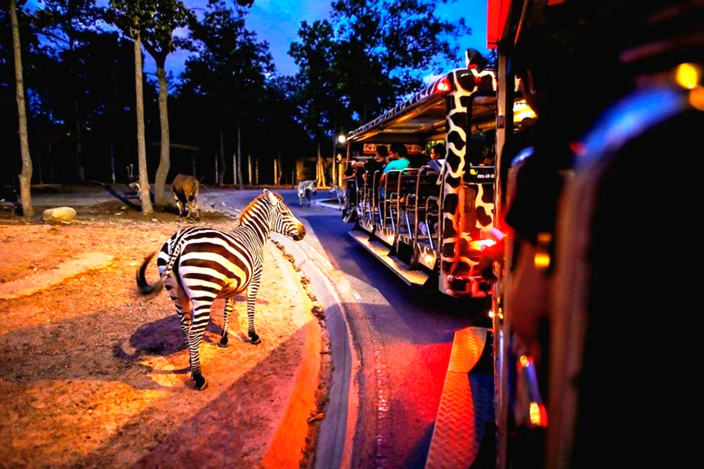 游览清迈夜间野生动物园,近距离观赏长颈鹿、斑马和夜行动物等野生动物