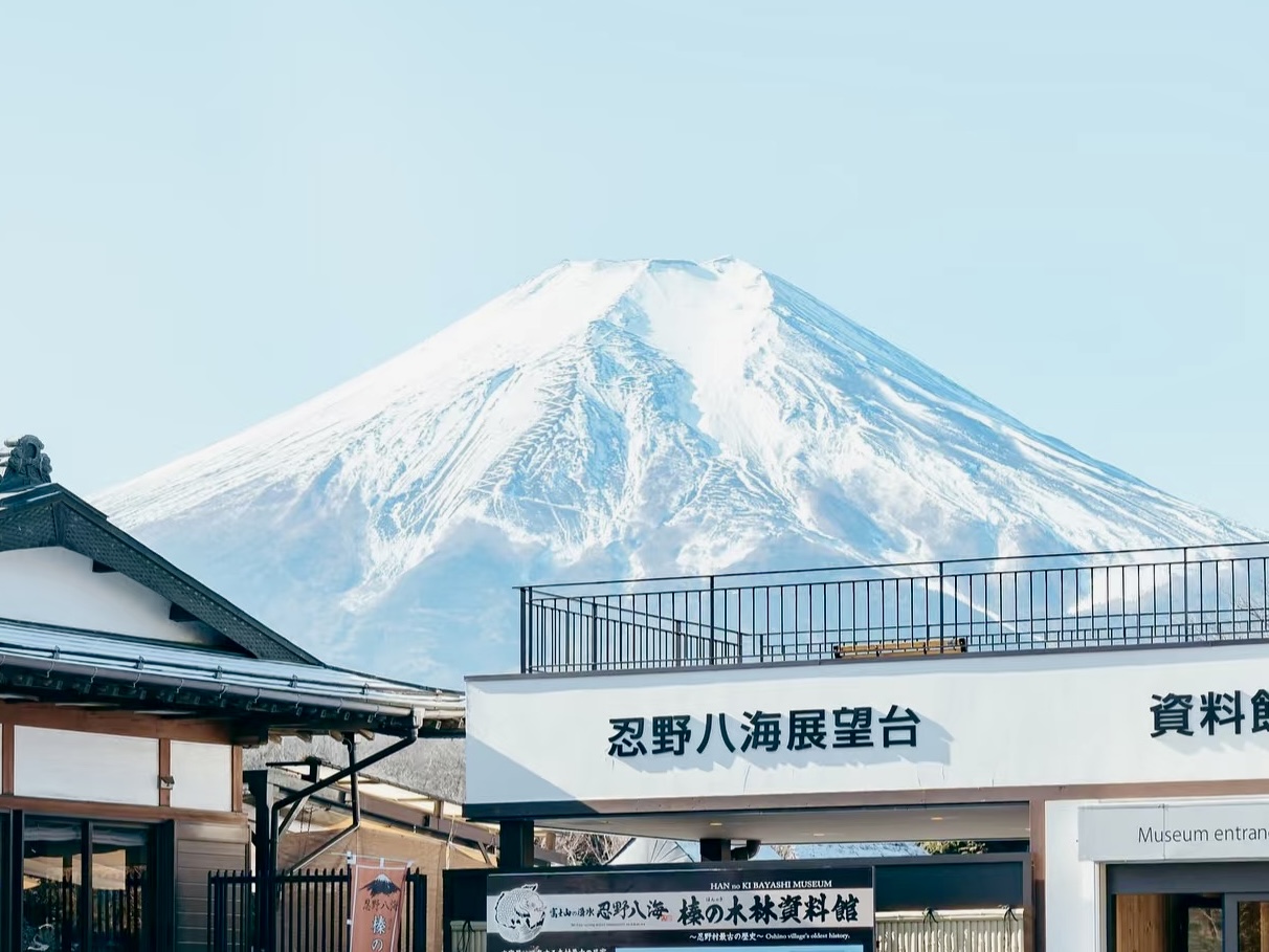 富士山全景|木质观景台直面山体,晴时棱角锋利轮廓清晰,雾日柔若水墨,四季光影皆撼动瞳孔。