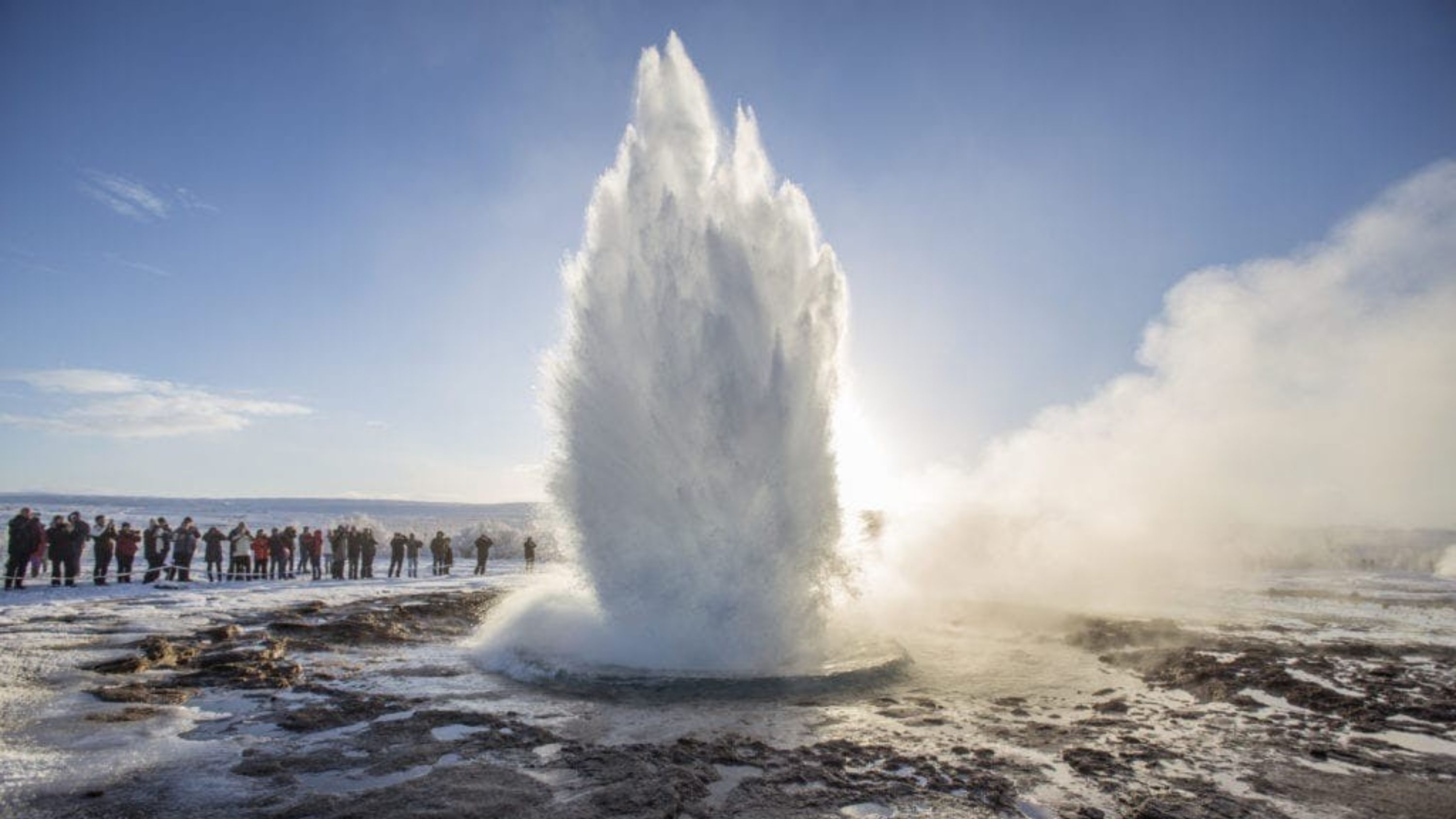 冬季,体验史托克间歇泉,在冰冻中喷涌出强劲的蒸汽