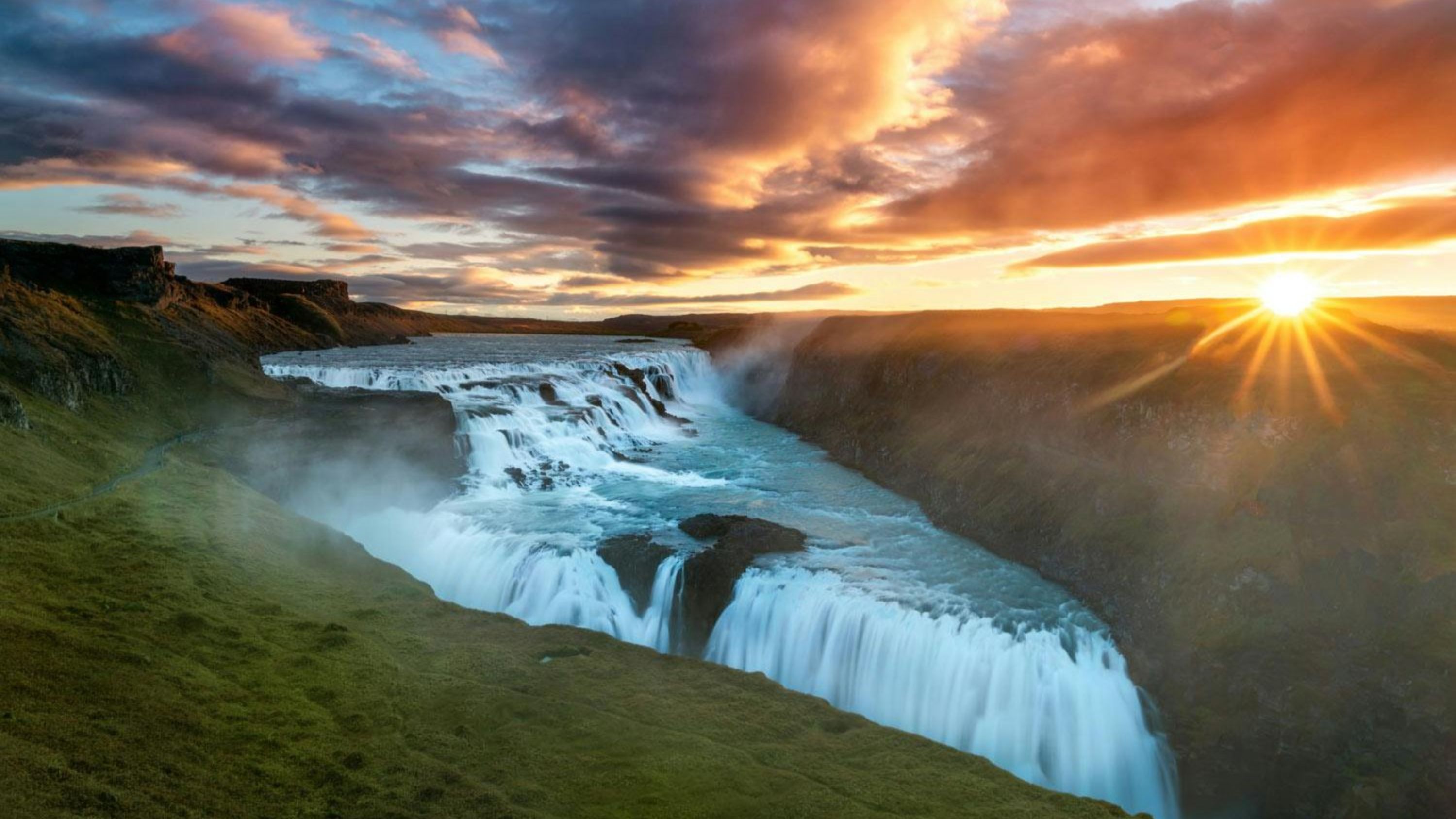 夏季的黄金瀑布尽显其美丽,水流湍急,彩虹绚丽