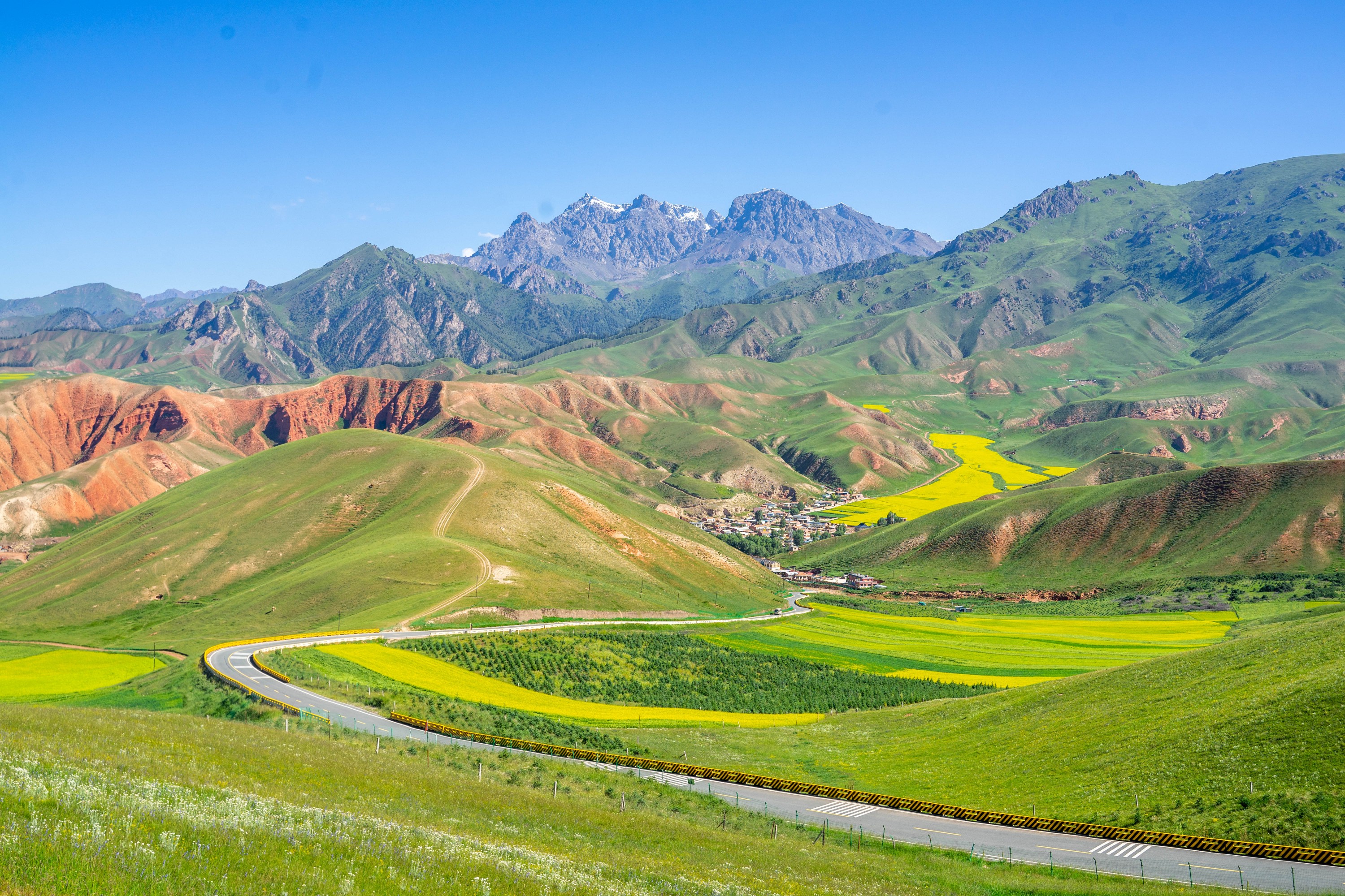 15:00抵达最后一站门源,车览【门源油菜花海】(无需门票 花期为每年7月份前后)铺天盖地的金黄色,无际无边。浩门河在中间流淌,竟相怒放的油菜花就像镶在两道的金丝带蜿蜒飘舞,与祁连山遥相辉映,让人迷醉忘返。随后,15:30结束行程,出发返回西宁