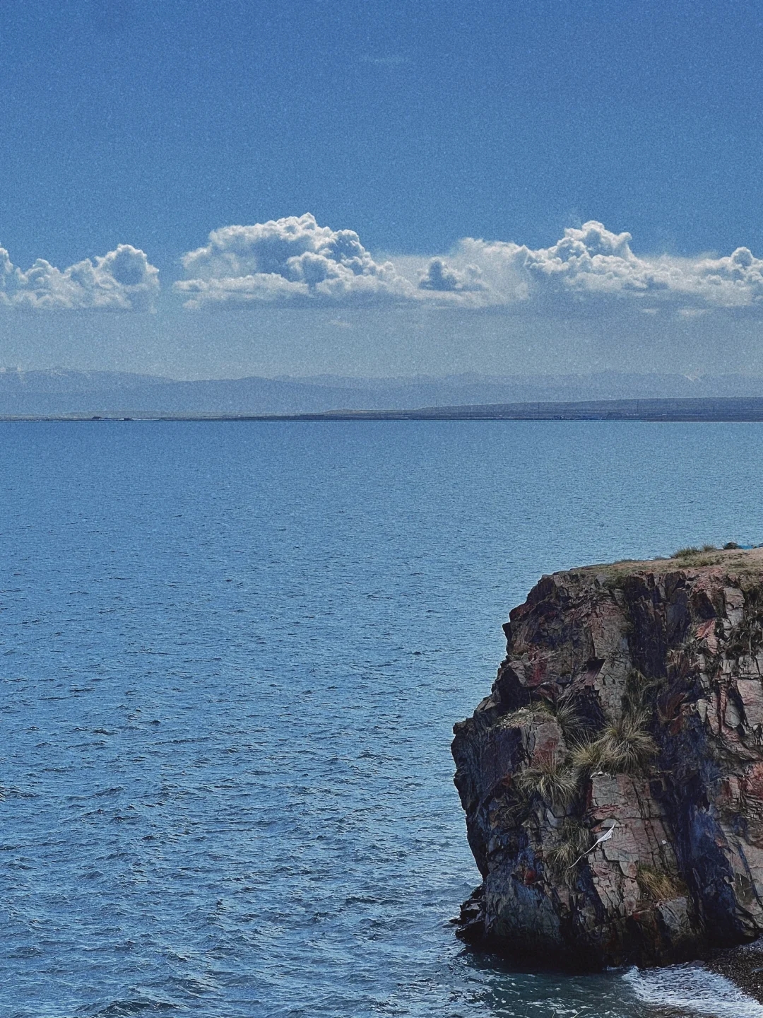 下午,前往【青海湖断崖】。青海湖断崖的湖面呈现出一片碧蓝,水质清澈,站在崖上俯瞰湖面,仿佛置身于一个水晶般澄澈的世界。青海湖断崖是天然形成的地质地貌,是一座在青海湖边高于湖面十几到二十米的小崖壁,也是当地人进行祈祷和祷告的地方,湟鱼洄游时节,会有大量的湟鱼洄游集中在岸边。断崖这边既能直接到湖边,有海鸥,也能站在断崖高处俯瞰湖水,还有一些半岛形状的海岸,摄影旅拍都能在这里找到想要的场景。