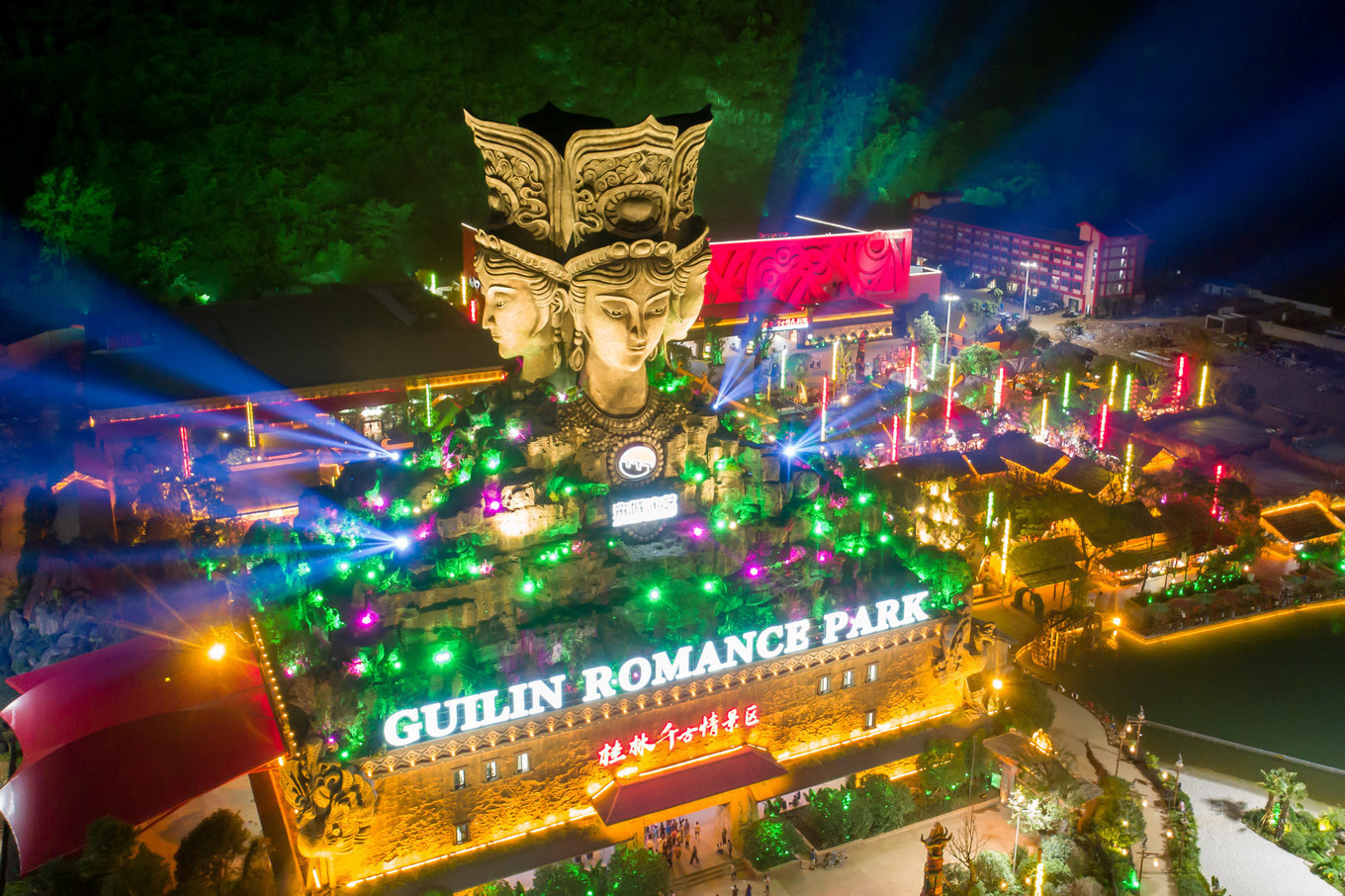 《桂林千古情》:核心表演,全剧分为多个场次,如《远古的呼唤》《大地飞歌》《米粉传情》《靖江王府》《刘三姐》等,运用先进的声、光、电等高科技手段和舞台机械,在水陆空三维立体空间演出,再现了桂林的历史文化。