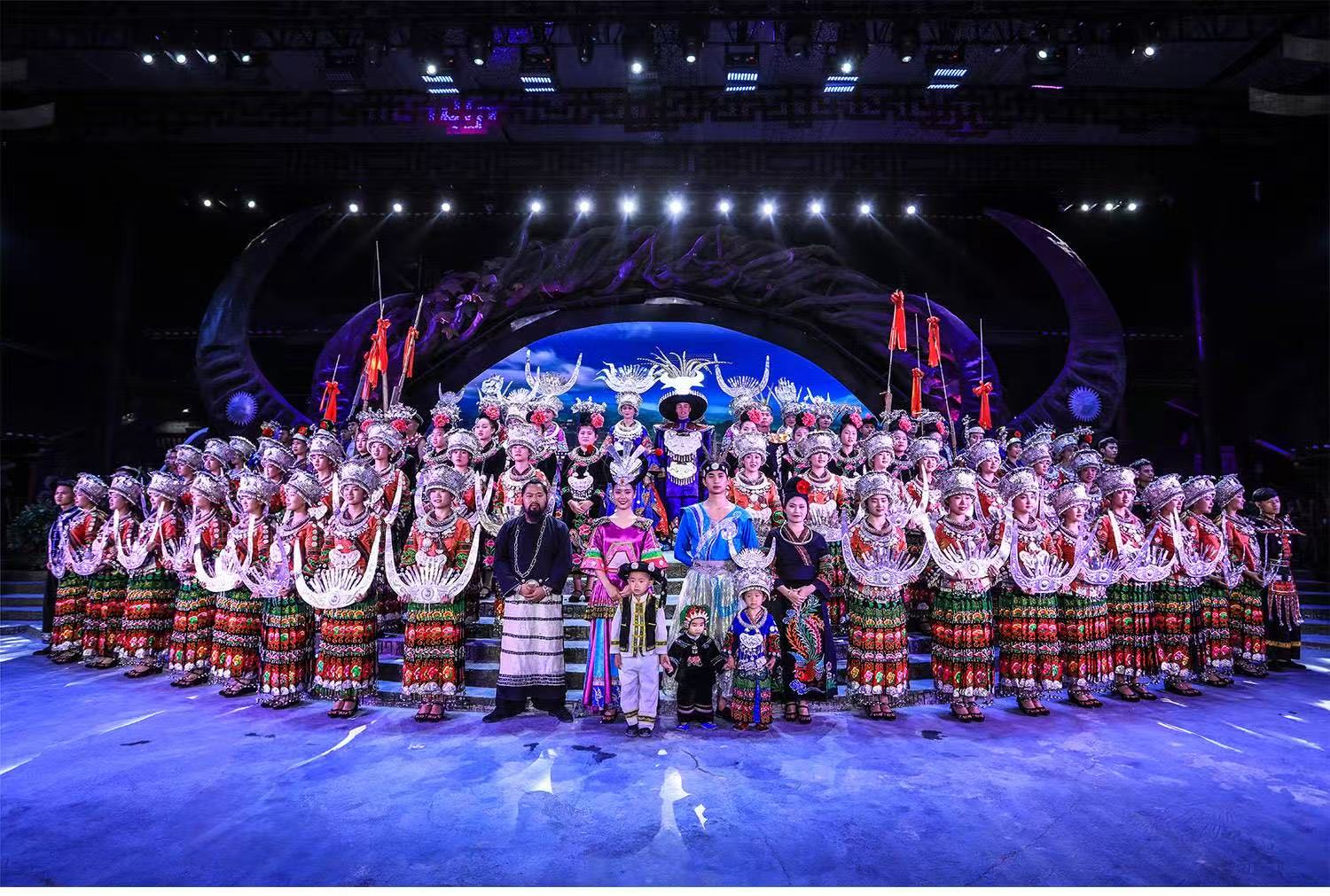 《美丽西江》晚会华彩绽放,舞台以苗寨山水为幕。身着银饰盛装的苗族演员,踏着鼓点跳起芦笙舞,裙摆飞扬间银铃作响;高亢的苗族飞歌穿透夜空,情歌对唱情意绵长。更有惊险的上刀山、下火海表演,光影与歌舞交融,将苗族千年文化与风情演绎得淋漓尽致,令人沉醉。