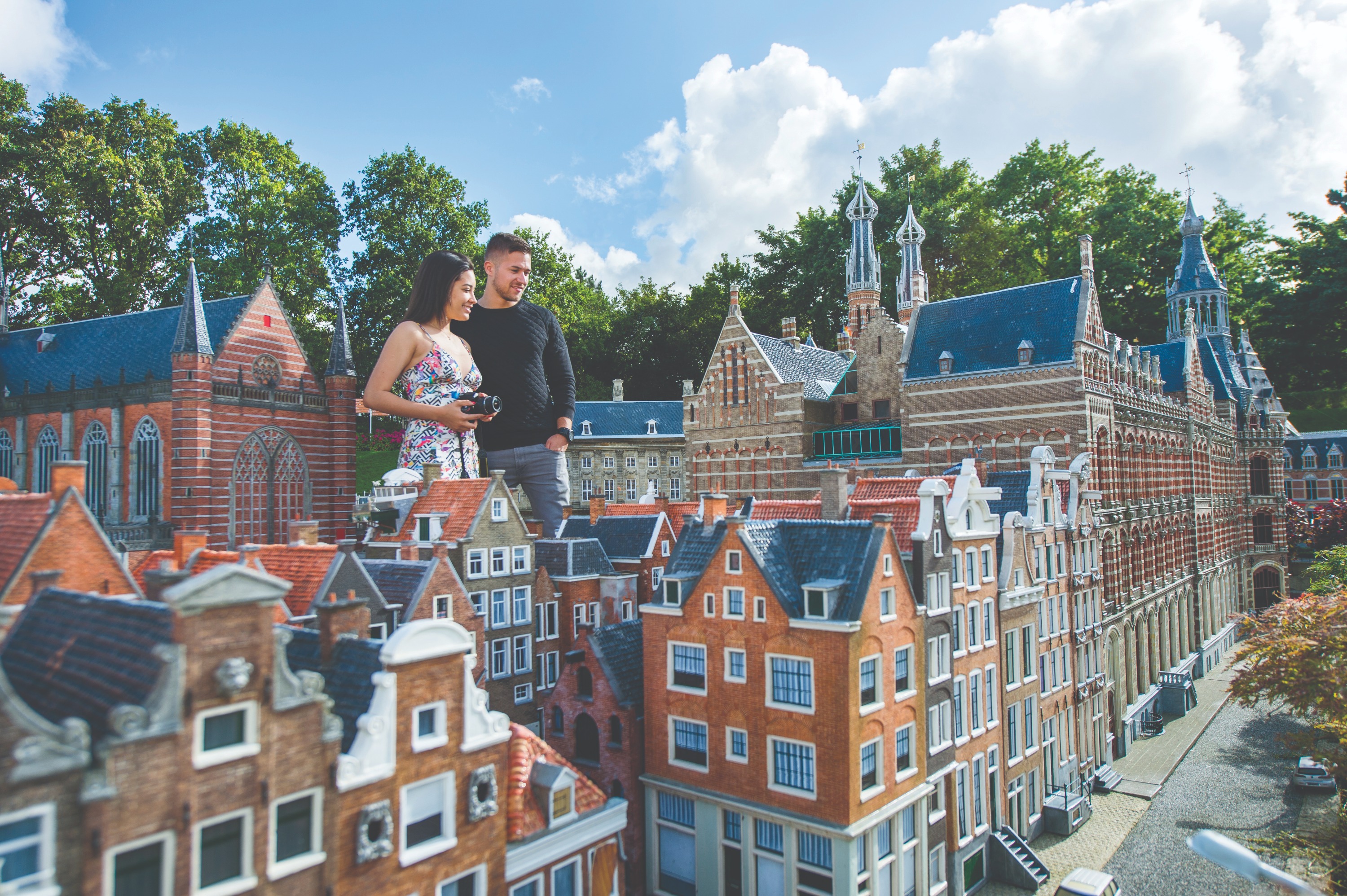 以荷兰微型城市为背景拍照