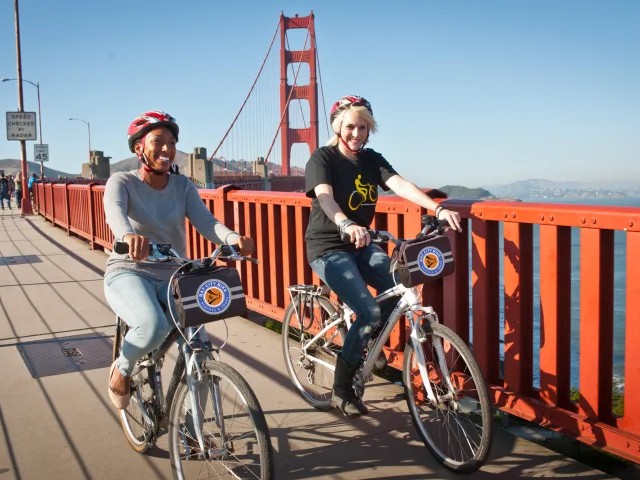 踏上电动自行车导览之旅,穿越旧金山标志性的金门大桥。约3小时的旅程从渔人码头出发,途经水上公园、梅森堡、滨海区和要塞公园等地标,最终抵达堡垒角。骑行者沿着专用路径穿越大桥,饱览海湾和恶魔岛的全景。之后,继续穿过观景台和旧贝克堡,最终抵达以艺术画廊和餐饮场所闻名的索萨利托。行程包含电动自行车、头盔、自行车锁以及英语导游的讲解。行程结束后,参与者可以租用自行车继续探险,但需视电池电量而定。