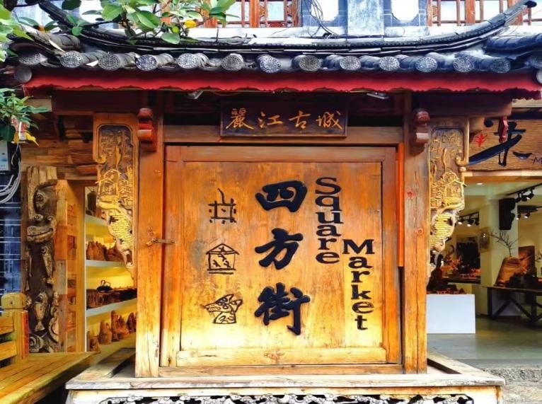 以四方街是一个数百平方米的方形广场,被称作“丽江古城的心脏”。明清时期,四方街就是滇西北商贸枢纽、茶马古道上的货物集散中心。四方街以彩石铺地,地势西高东低,夹在丽江古城西河与中河之间,有放水冲街的习俗。站在四方街上,主街有四条向四周辐射,每条街道又分出许多小街小巷,街巷相连,四通八达,从这可以到古城的各个角落
