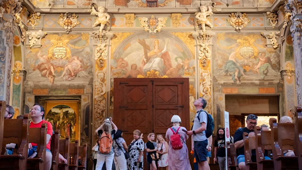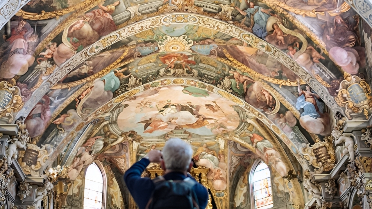 天花板的每一寸都布满了令人惊叹的宗教艺术品