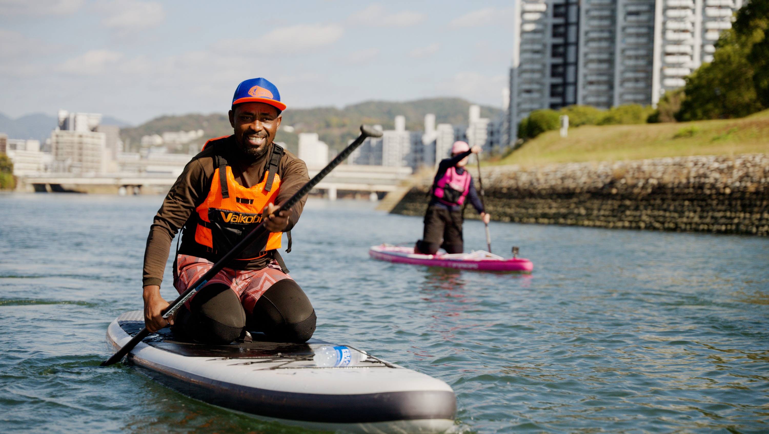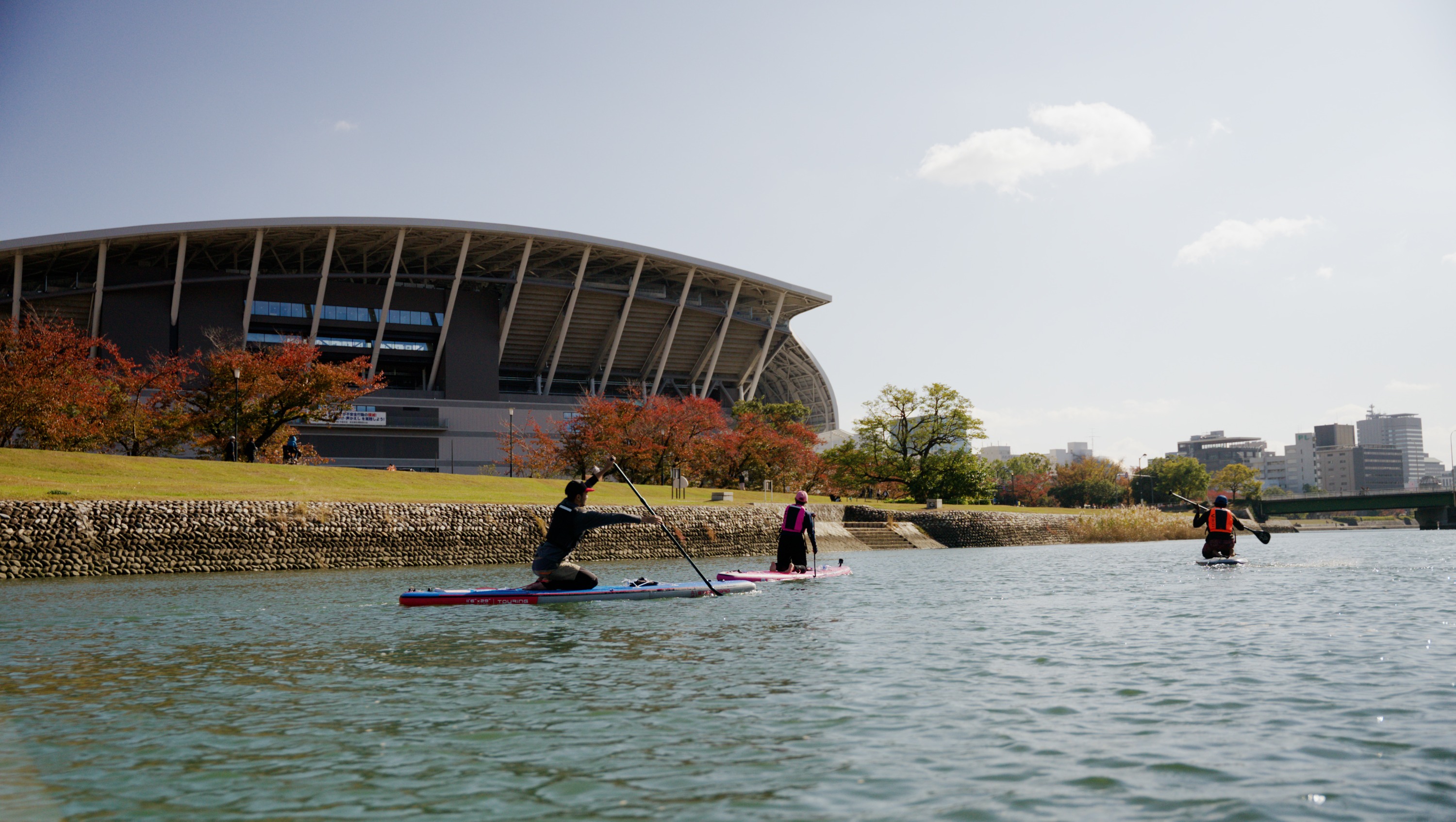 在广岛宁静的河流上享受平静的 SUP 体验