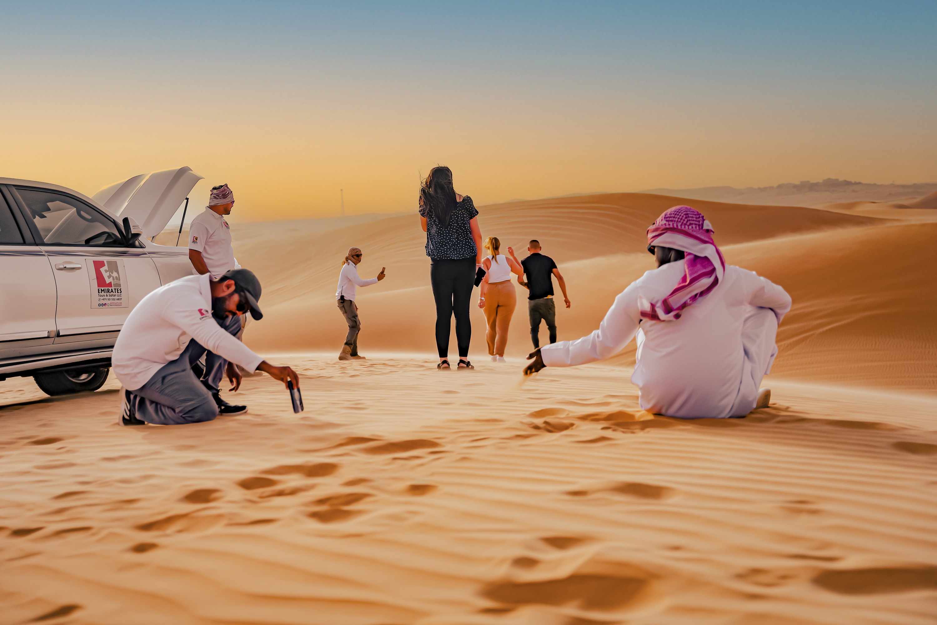 参加夜间野生动物园,在沙漠中度过一个美好的夜晚!与技术精湛的司机一起冲撞金色沙丘,开始它吧。坚持住,体验高速过山车带来的刺激!然后,骑骆驼放松一下,放慢脚步。前往最高的沙丘,欣赏壮丽的日落。在滑沙时感受匆忙,然后在舒适的露营地安顿下来,享用一些小吃和丰盛的烧烤晚餐。随着体验接近尾声,您可以观看肚皮舞、欣赏指甲花彩绘等等。这包括为您在阿布扎比的酒店提供的往返接送服务,为您提供最大的便利。