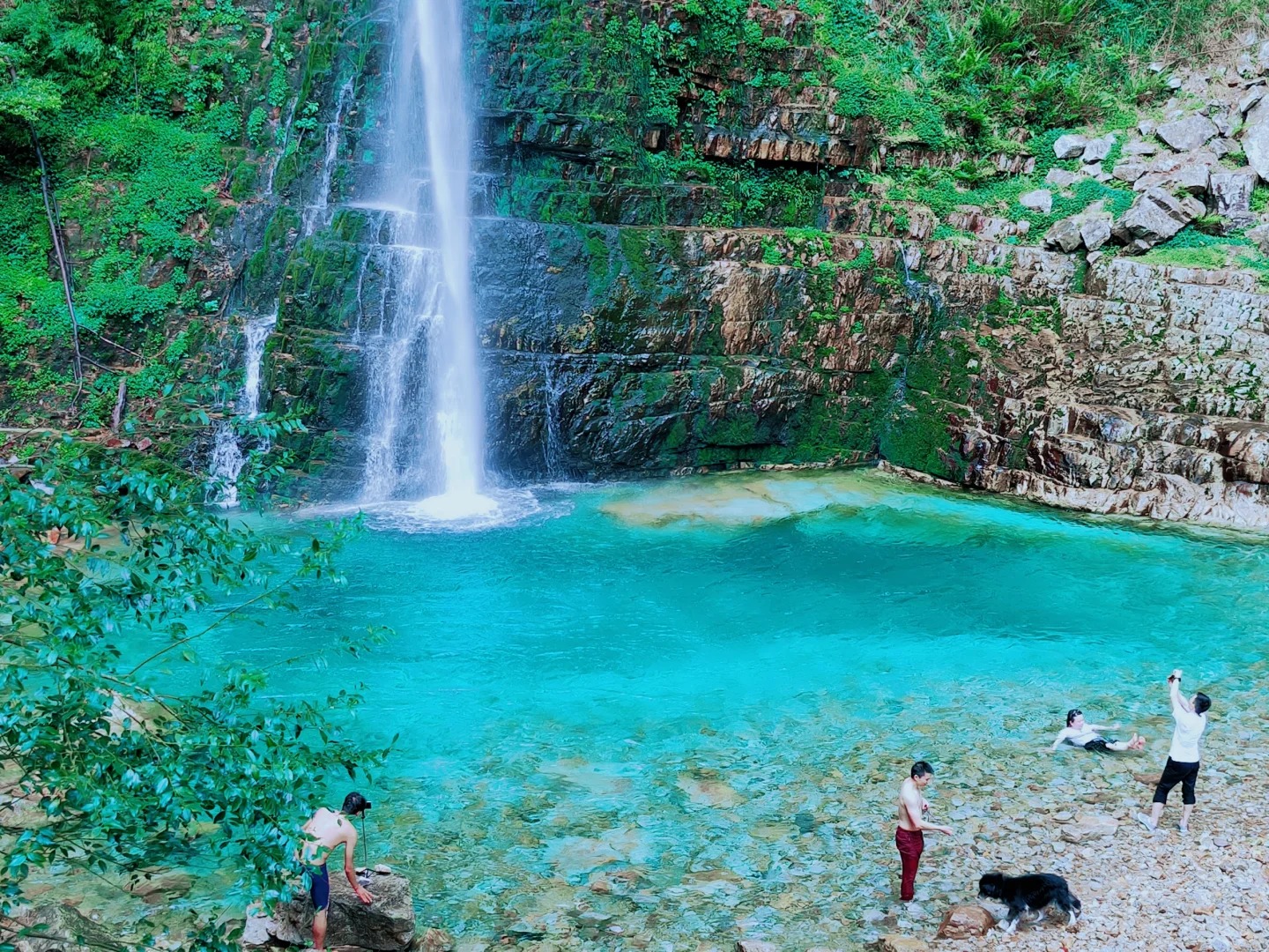 * 15:30到达夹缝岩瀑布,花式跳水玩水