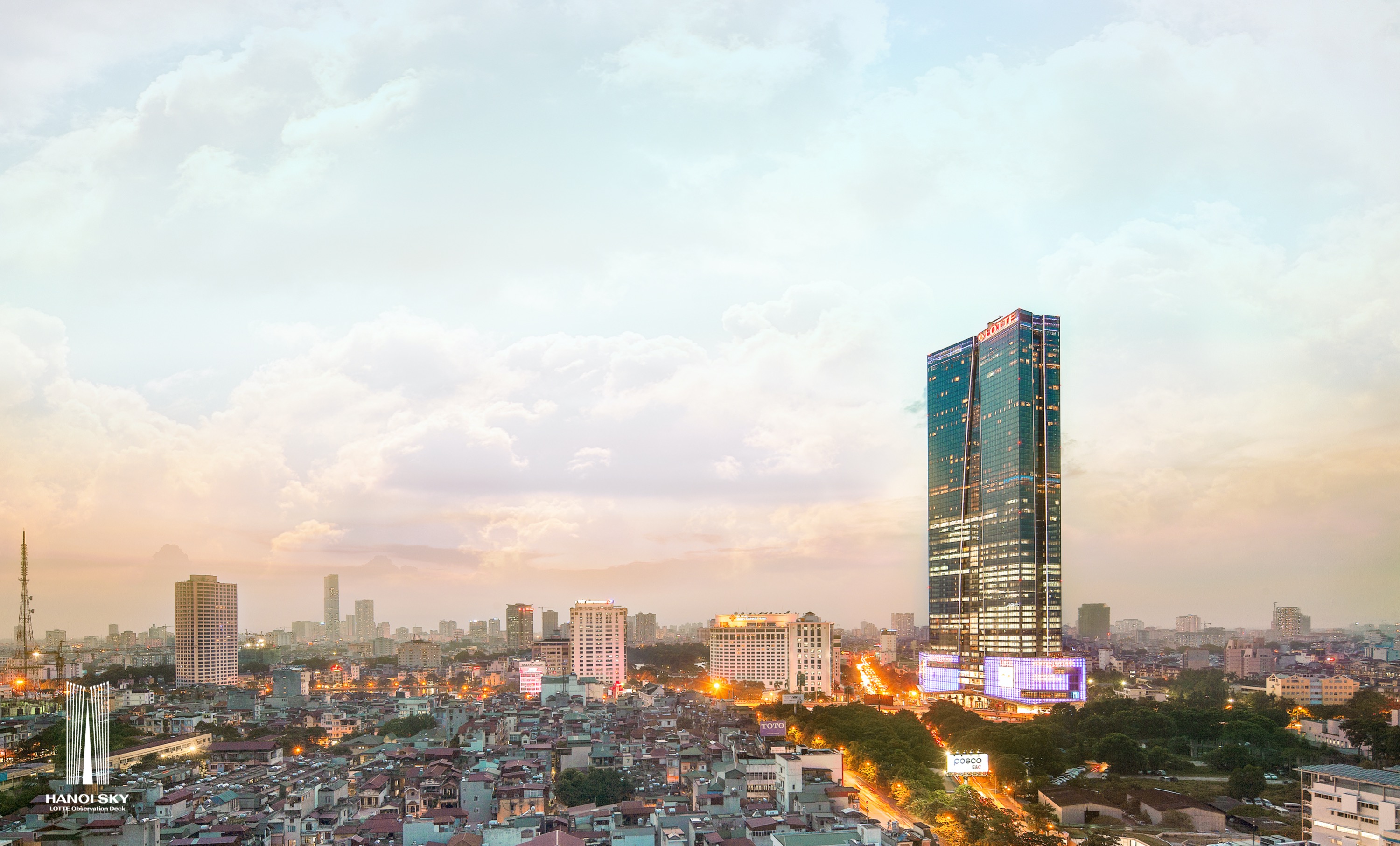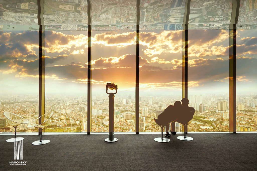乐天河内天空观景台也是与朋友和亲人一起见证日落或在城市灯光照亮夜晚时欣赏闪闪发光、迷人的河内的理想场所。