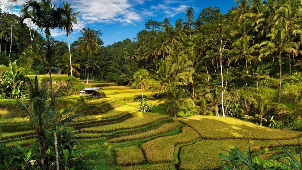 欣赏巴杜尔山和巴厘岛著名的水稻梯田的美景
