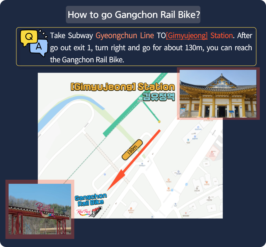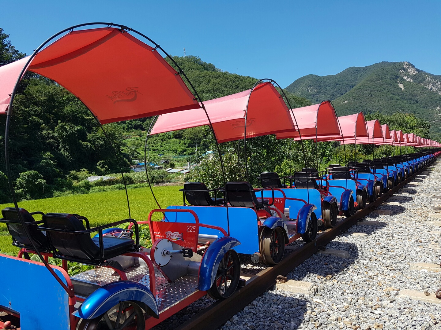 江村铁路自行车是南怡岛的一项热门活动,游客可以沿著旧江村铁路公园的轨道骑行,同时欣赏 318 公里北汉江的迷人风光。当您沿著木槿花列车行驶了 70 年的相同路线旅行时,您将能够体验一段历史!金裕亭站路线全长约8.5公里,第一段(6公里)约50分钟。骑行完第一个 6 公里后,您将到达一个中转站,您可以在那里小憩或到自助餐厅吃点心。从那里继续乘坐 20 分钟的浪漫火车,这样您就不需要兜售了!到达江村站后,一定要乘坐免费班车返回出发地。