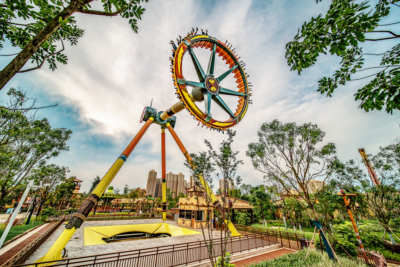 * 广州融创乐园总占地面积约59.6万平方米,是独具南越文化与岭南风格的大型室外主题乐园。千年商都、海上丝路、岭南印象、南越古国、五羊传说、梦幻花园6大主题区域穿越古今,带来妙不可言的欢乐体验