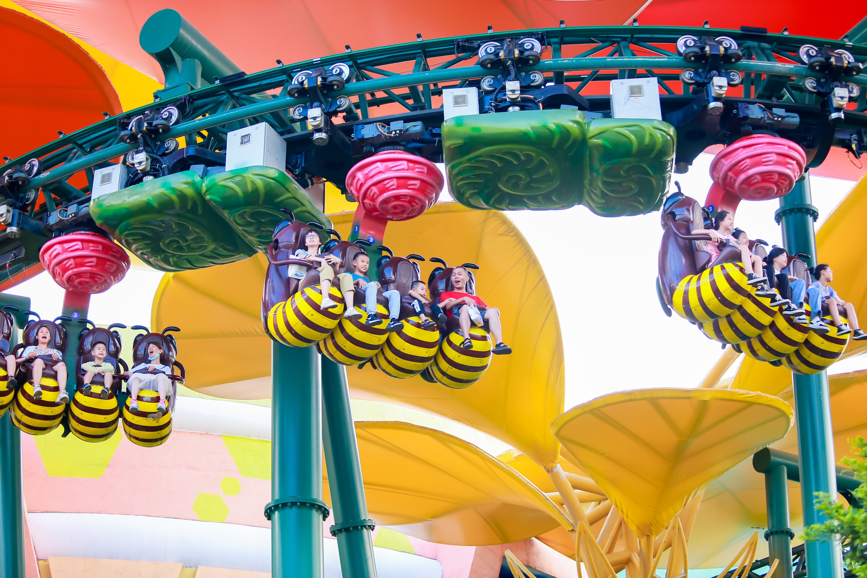 【花苑奇境】为孩子们量身定制的家庭奇幻项目。色彩缤纷奇趣的大型悬挂过山车在室内与室外尽情穿梭,途中更有趣味十足的媒体互动体验,为孩子们打造一次梦幻、童话的探险之旅。