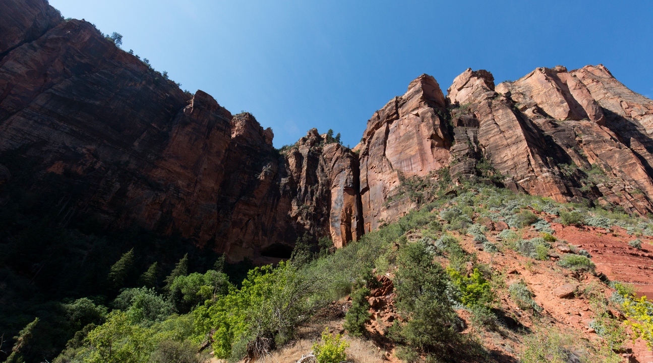漫步在两岸悬崖峭壁环绕的河边小径,沉浸在锡安国家公园的宁静之中
