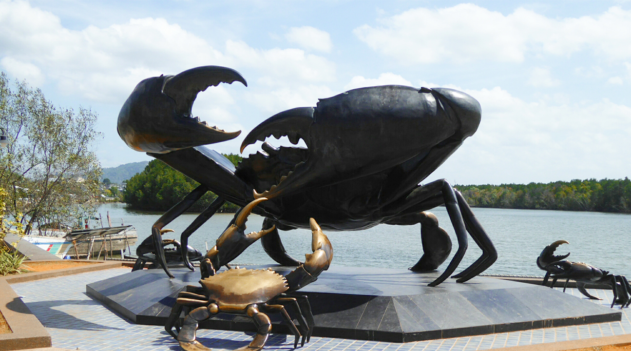 探索泰国甲米府迷人村庄巴生岛的自然美景和文化,并与迷人的巨蟹雕塑合影留念